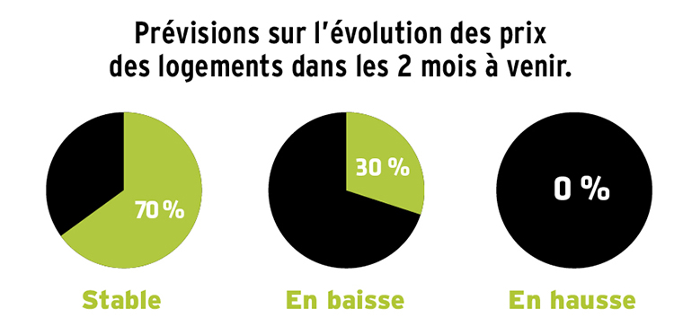 Baisse des taux et plus grande souplesse des banques à accorder des crédits permettent de nouvelles transactions à des prix plus élevés que précédemment. Alors même que les prix offerts demeurent globalement stables, c'est donc la diminution de la proportion des transactions sur des prix en baisse qui va se traduire par une tendance haussière de l'ensemble. Ainsi dans cette dernière enquête sur les logements, la proportion de nos correspondants à prévoir pour avril une baisse des prix diminue très légèrement de 34 % à 30 % alors que ceux prévoyant une hausse reste stable proche de 0 %.