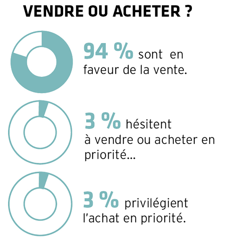 Il faut profiter de l'éclaircie actuelle sur le marché immobilier pour d'abord revendre un bien avant d'en acheter un nouveau. C'est le conseil suggéré par 94 % de nos correspondants pour le logement.