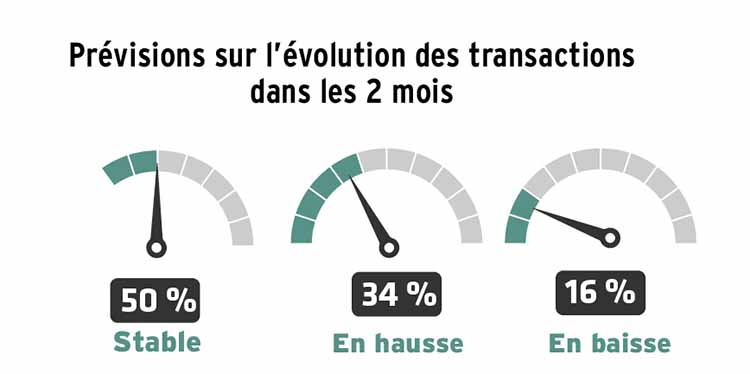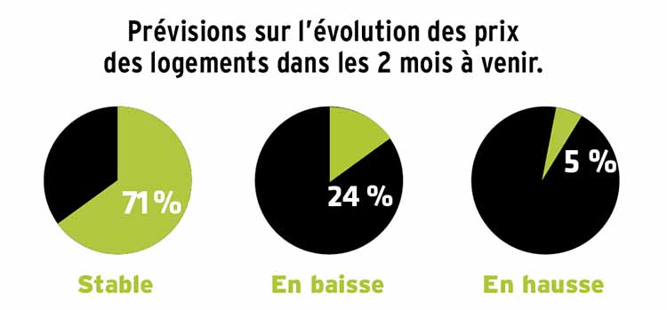 Pour ces derniers, 64 % des correspondants envisagent la stabilité des prix, 30 % encore une baisse et 6 % une hausse. Quant aux logements, 71 % des notaires se prononcent en effet pour la stabilité des prix,