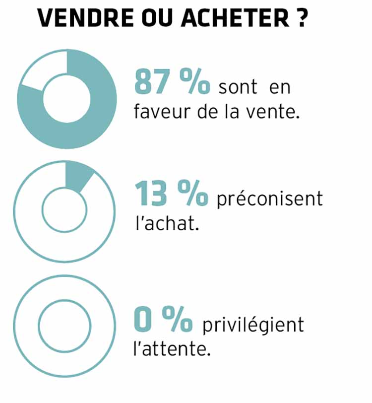 24 % une baisse et 5 % pour une hausse. Pour l'une et l'autre tendance, soulignons l'amélioration constante des prévisions sur l'évolution des prix depuis l'automne dernier.