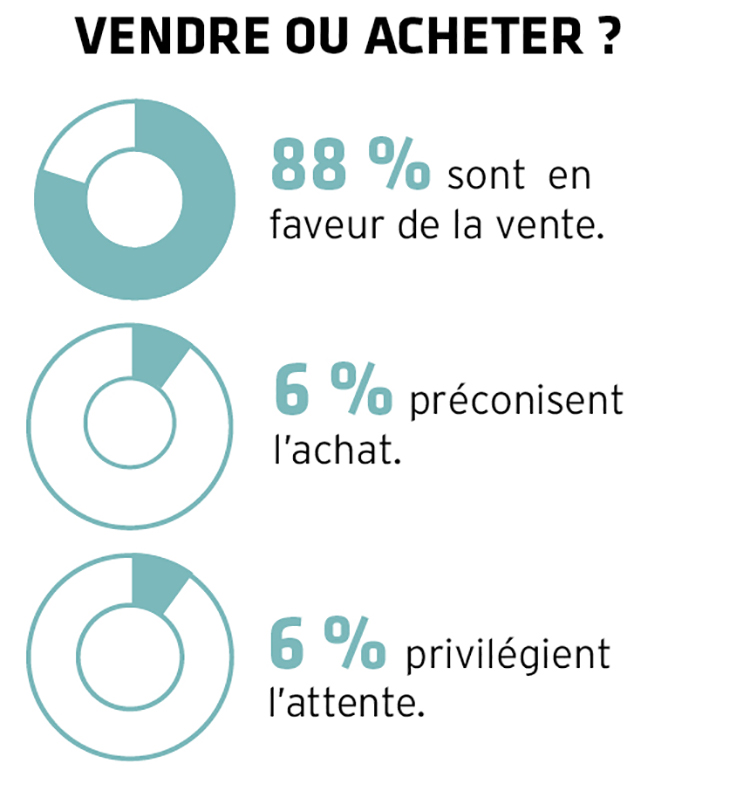 Peu d'évolution au niveau des perspectives économiques. L'augmentation des droits de douane annoncée par Donald TRUMP et les compressions budgétaires décidées par nos gouvernants ne peuvent engendrer qu'un ralentissement de l'activité économique préjudiciable à l'investissement immobilier. Peu probable que les prix de l'immobilier repartent à la hausse dans un avenir proche. Dans ces conditions il faut préférer la vente d'un bien avant le rachat d'un autre. C'est ce que préconise 88 % de nos correspondants pour le logement, proportion pratiquement équivalente à celle de notre précédente enquête. Pour les terrains, les conseils s'orientent à 45 % pour la revente d'un bien avant l'achat, 41 % pour la proposition inverse et 14 % pour l'attente.