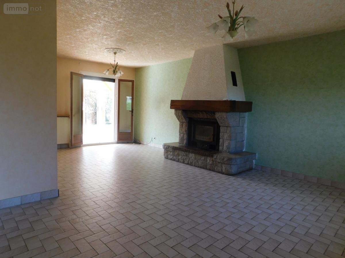 avec cheminée à foyer fermé ouvrant également sur la véranda, dégagement, salle d'eau, W.C. et trois chambres.