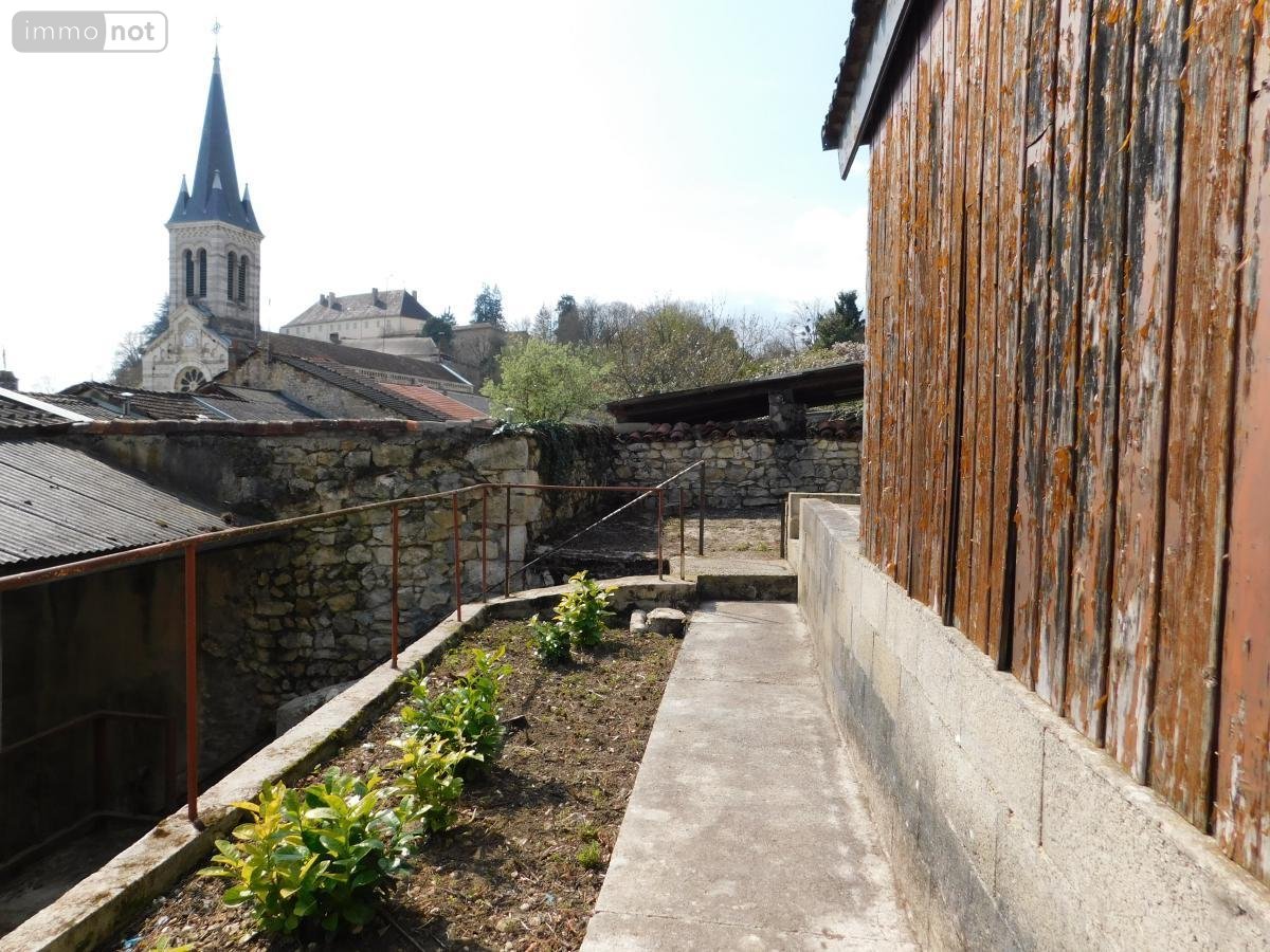 Centre historique de Pont-d'Ain, à vendre, une maison de ville, avec garage et terrain d'environ 1000 m² libres. La maison comprend, en rez-de-chaussée, entrée, garage, coin buanderie,