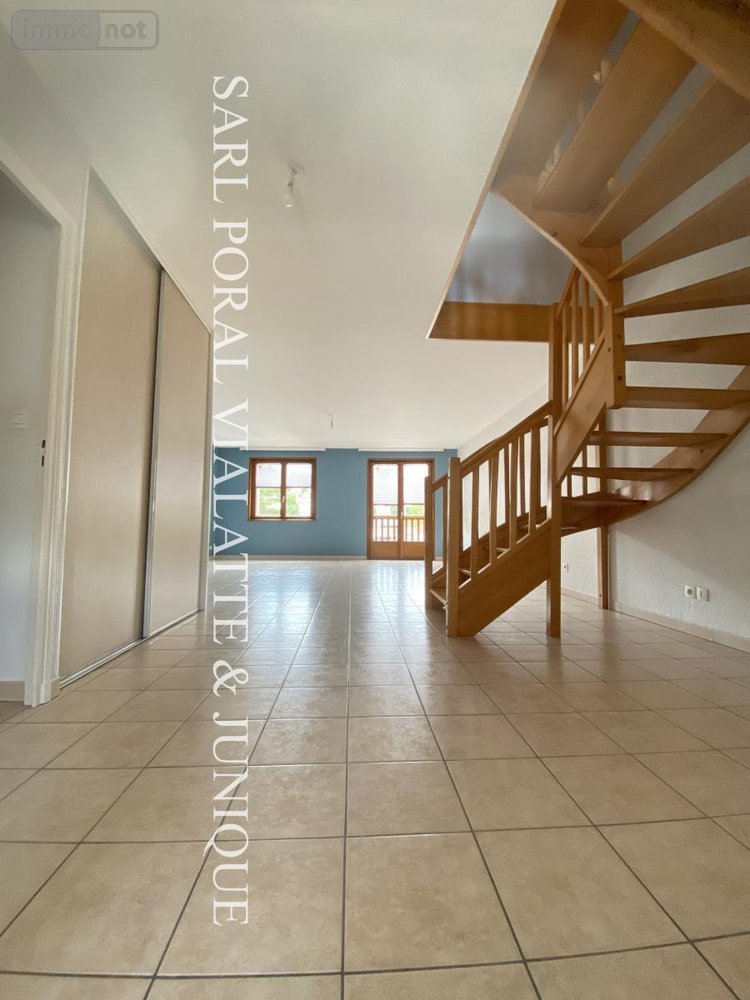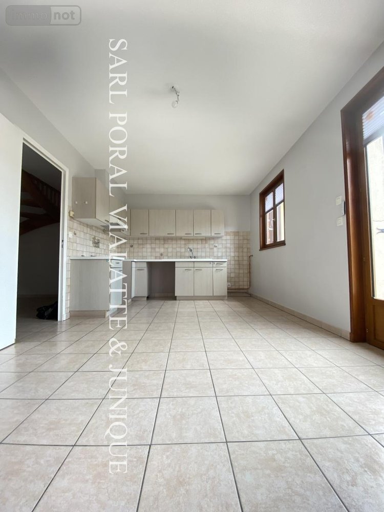AMBERIEU EN BUGEY, T4 duplex en centre ville comprenant : - au 1er étage : entrée avec placards, cuisine équipée de meubles et une hotte donnant sur terrasse, séjour, buanderie, wc, - au 2ème étage : dégagement, 3 chambres dont 2 avec placards muraux, dressing, salle de bains (baignoire et douche); wc. Garage et deux places de parking dans cour fermée. Chauffage électrique individuel au sol. Libre Loyer 1 232 € + charges 24 € (communs + TEOM). Dépôt de garantie 1 232 € Frais de bail env. 1 020 € Classe énergie D Les informations sur les risques auxquels ce bien est exposé sont disponibles sur le site Géorisques : www.georisques.gouv.fr
