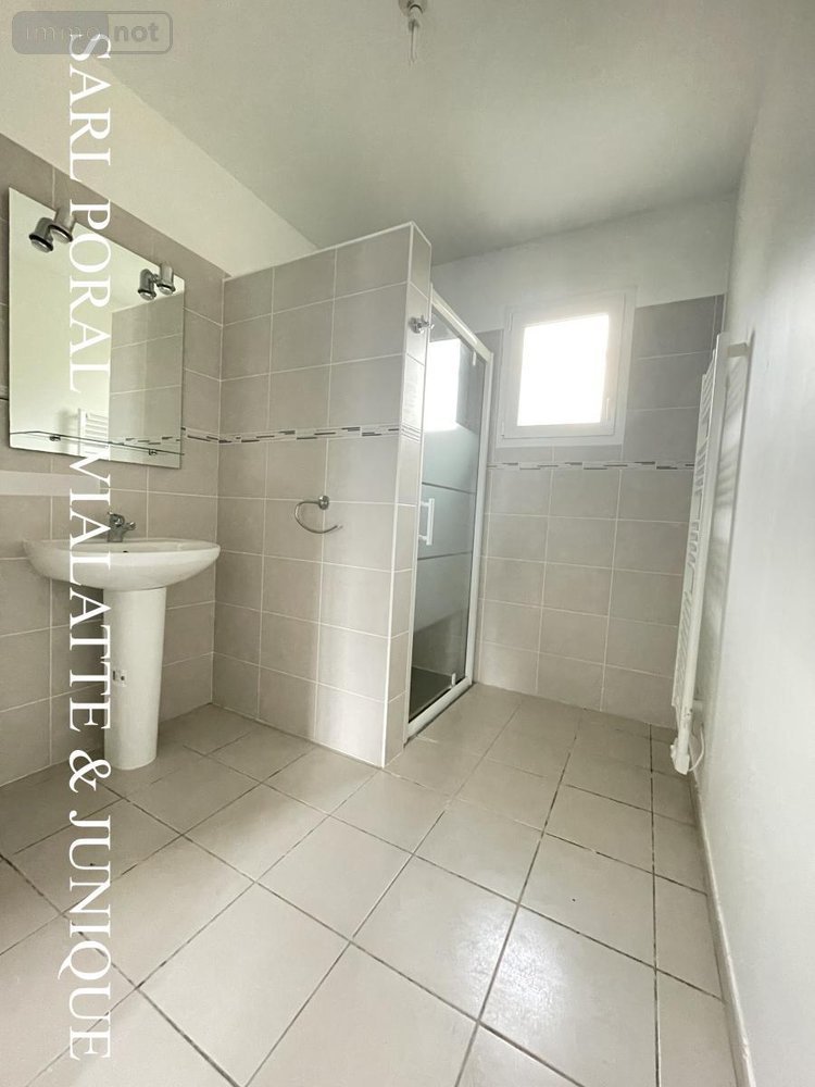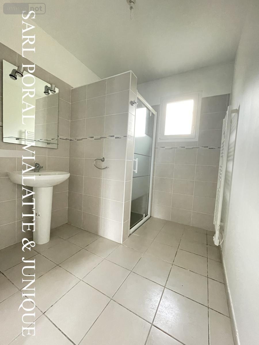Pièce principale avec cuisine équipée de meubles, plaque de cuisson, four & hotte, dégagement, 3 chambres avec placards muraux, buanderie, salle d'eau, wc.