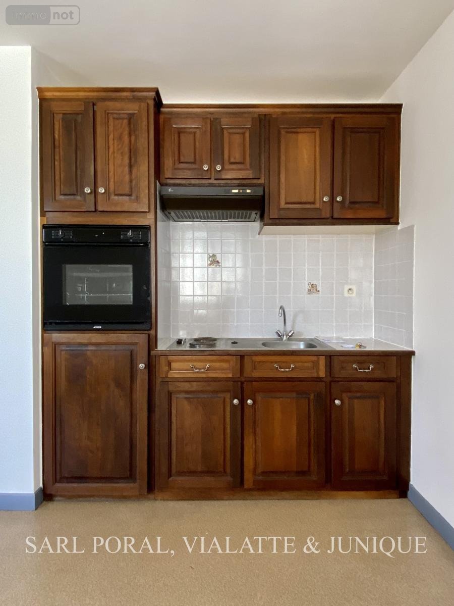 Entrée, pièce principale avec cuisine équipée (meubles, hotte, plaque de cuisson, four et réfrigérateur), salle d'eau avec WC et débarras.