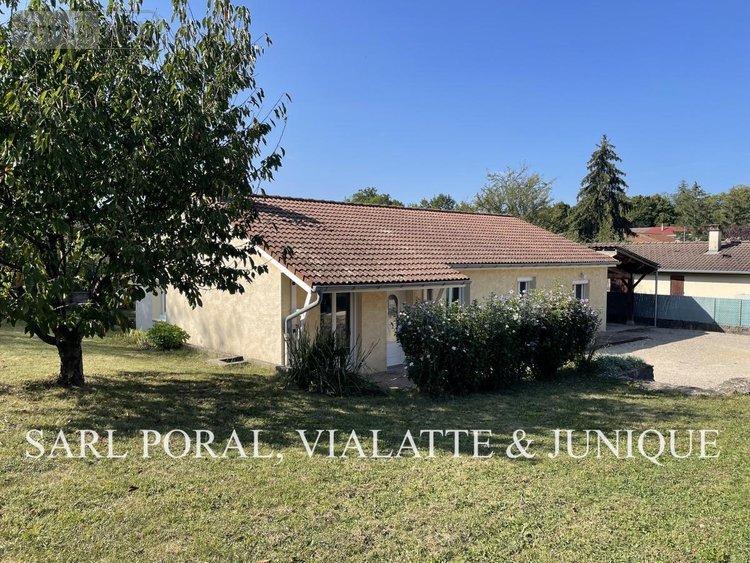 SAINT JEAN LE VIEUX, Villa T5 plain pied comprenant : Cuisine équipée (meubles, plaque de cuisson, four et lave-vaisselles) ouverte sur séjour avec cheminée, dégagement, 4 chambres dont 3 avec placards, salle d'eau, WC et cellier.