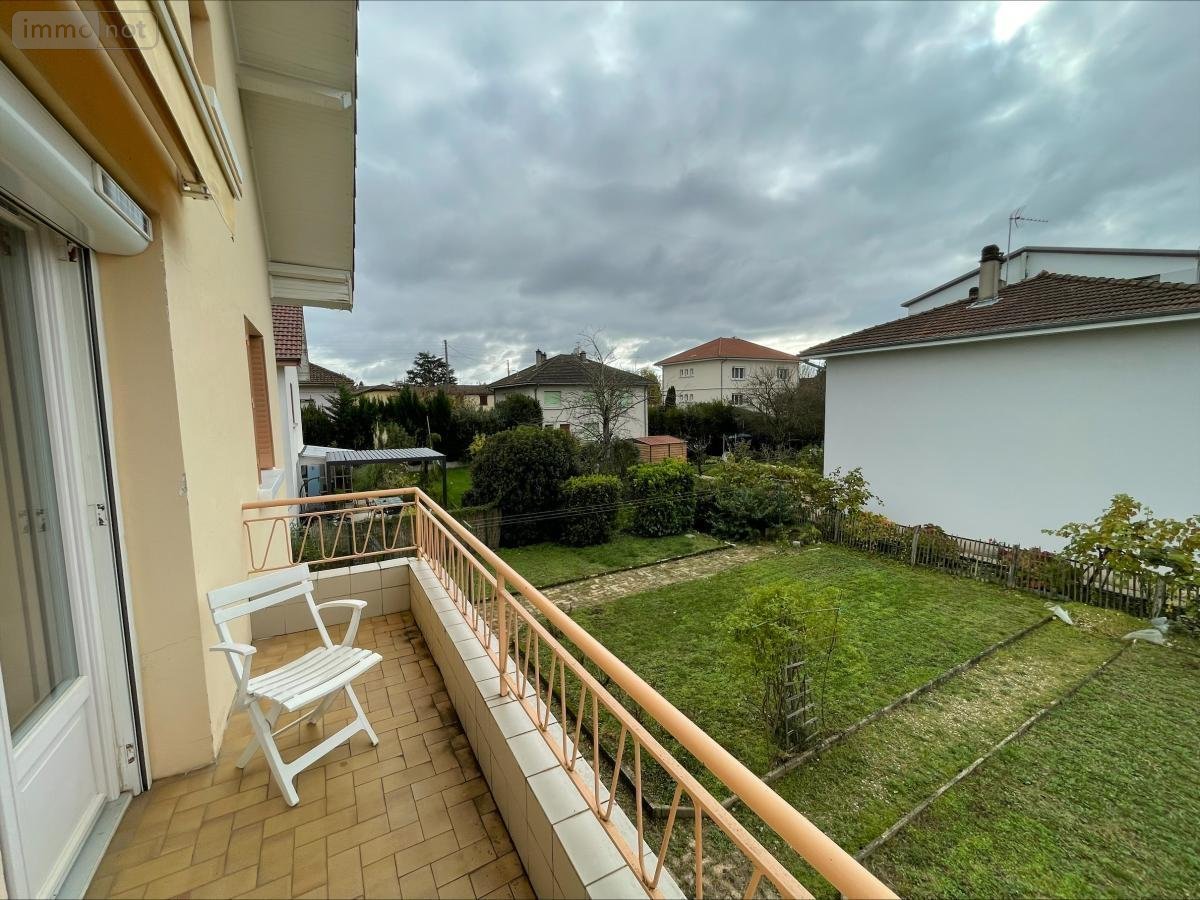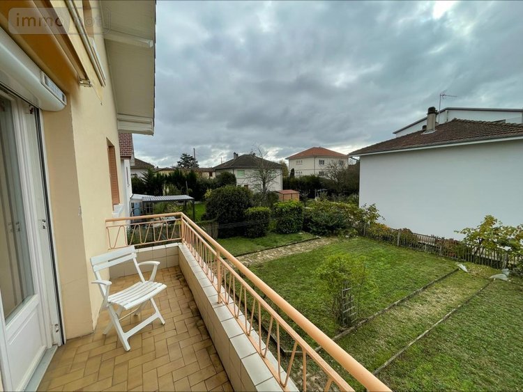 ETAGE : hall, cuisine ouverte sur pièce à vivre et donnant sur balcon, 3 chambres, salle de bains, wc séparé.