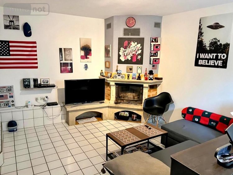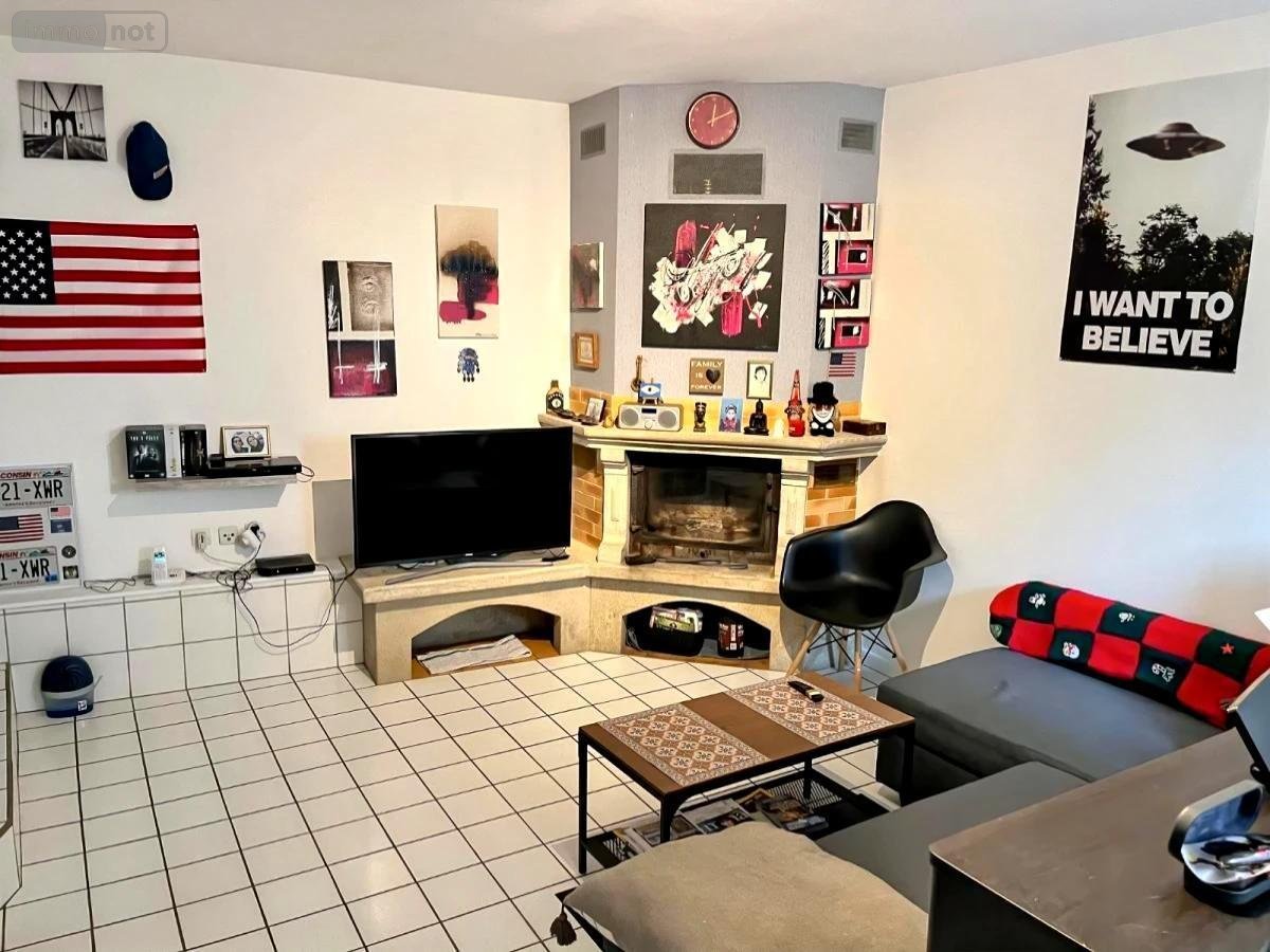 Espace de vie : Un salon accueillant avec sa cheminée, parfait pour créer une ambiance chaleureuse, complété par une cuisine aménagée attenante.