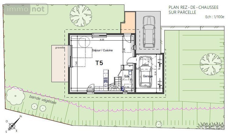 Jardin entièrement clos d'une surface de 455 m2.