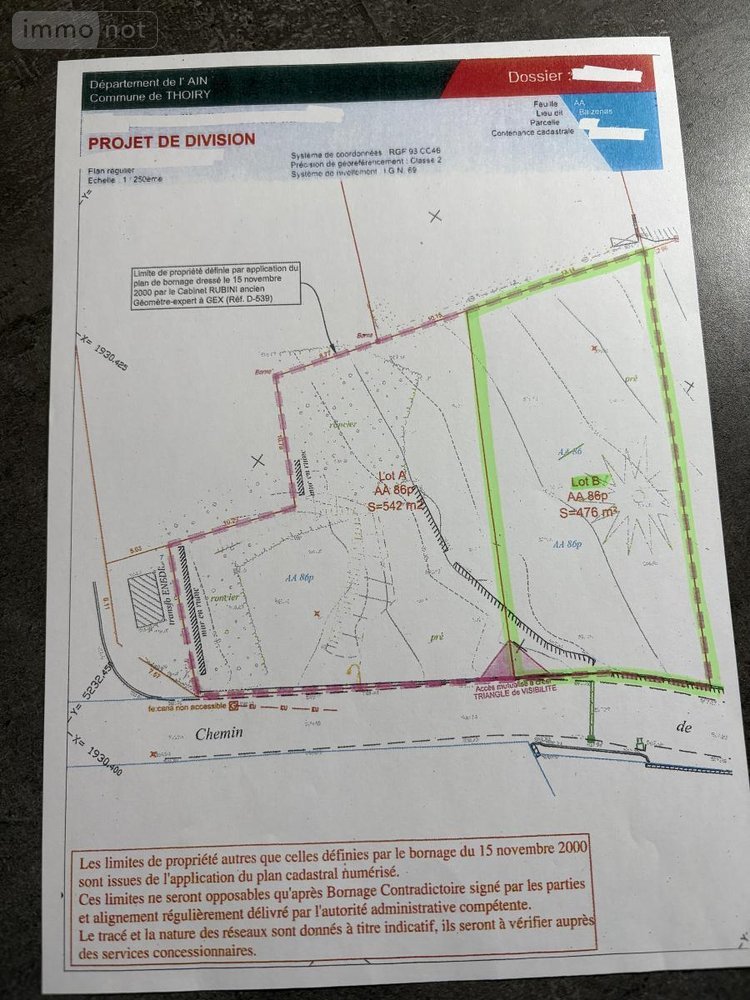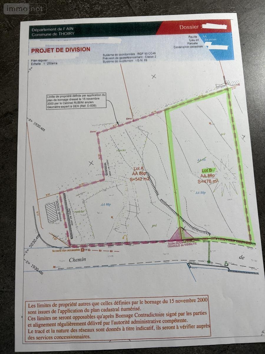 VENEZ DECOUVRIR ce terrain d'une surface de 476 m2 (lot B), en partie clos, situé en zone constructible UGm1 (secteur à dominance résidentielle) avec un coefficient d'emprise au sol de 0,25 soit une surface constructible au sol de 135 m2.