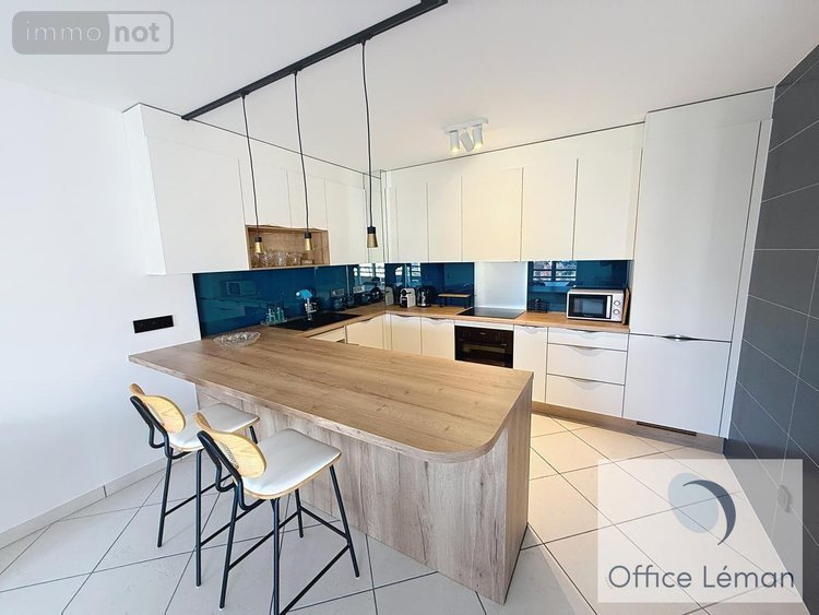 Au centre de Divonne bel appartement refait à neuf de type T3 loué en meublé. Il comprend une entrée, une cuisine équipée ouverte sur le salon séjour avec balcon, un couloir avec placards, un WC, une salle de douche et 2 chambres avec placards. Au sous sol un garage de 32 m² complète ce lot. Loyer 2 200 € plus une provision pour charges de 200 € ( chauffage, eau chaude, poubelle). Libre mi janvier 2026