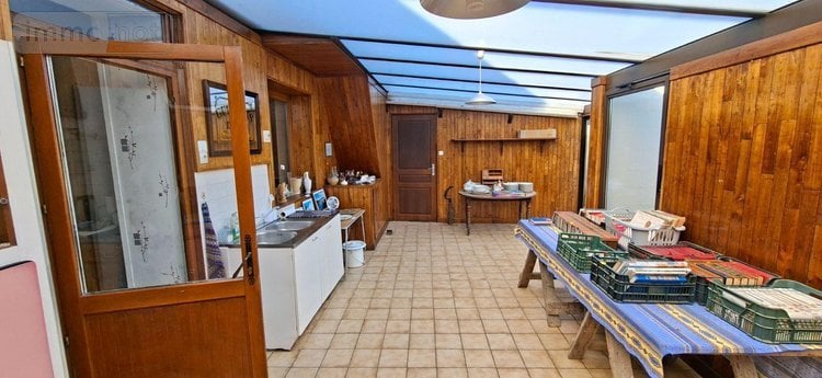 Elle est composée sur le rez-de-chaussée d'un salon / salle à manger, cuisine donnant sur une véranda, WC. Deux chambres, couloir, salle de bains.