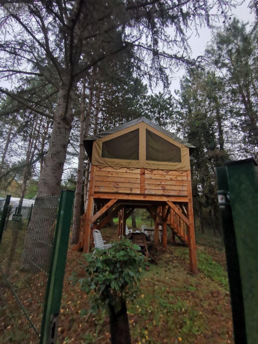 A deux mètres du sol, vous trouverez deux cabanes en bois, tout juste installées, pouvant accueillir chacune deux personnes.