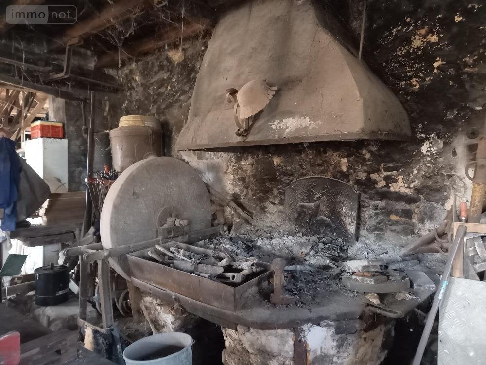 Ancien box. Ancienne forge à usage actuel de garage avec deux pièces à l'étage offrant encore de belles possibilités; Cour devant et agréable terrain sur l'arrière.
