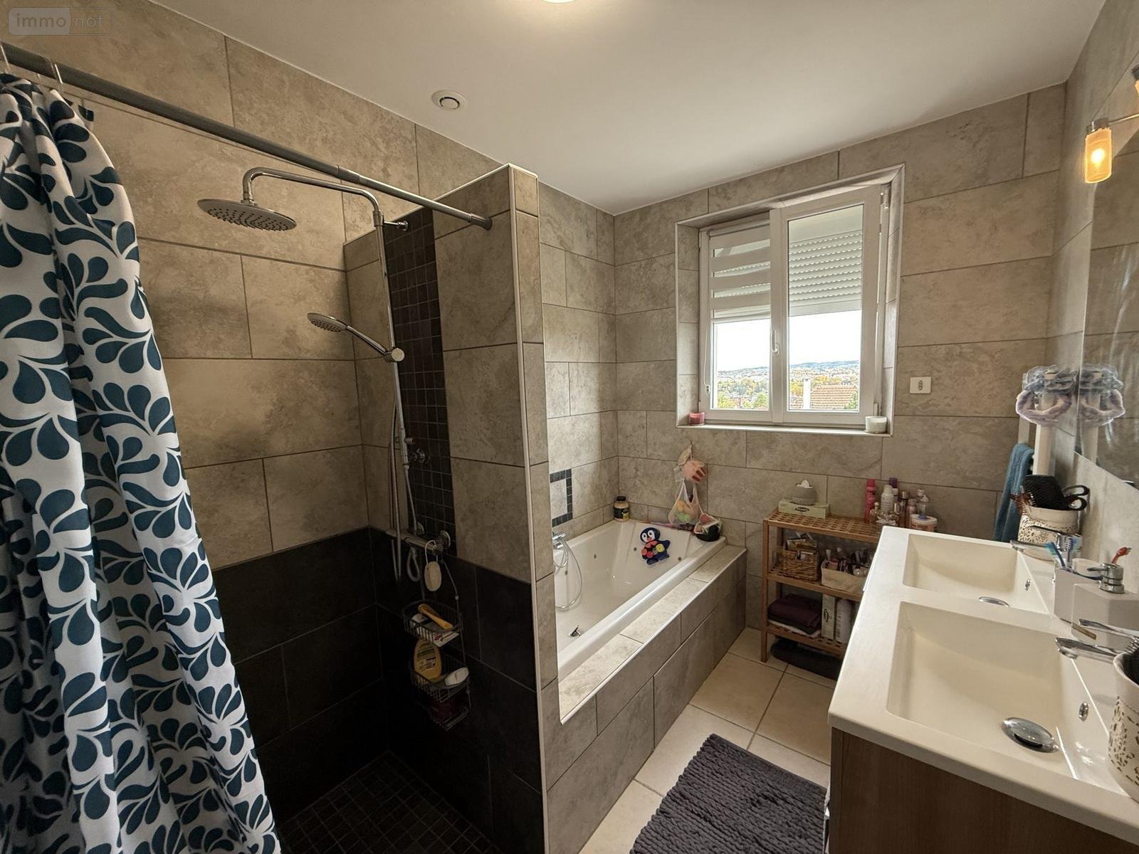Fenêtres double vitrage avec volets roulants motorisés.
