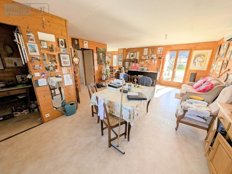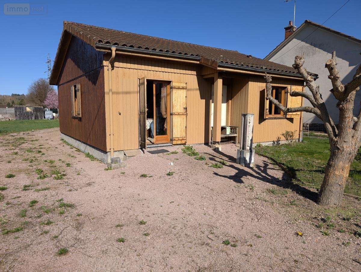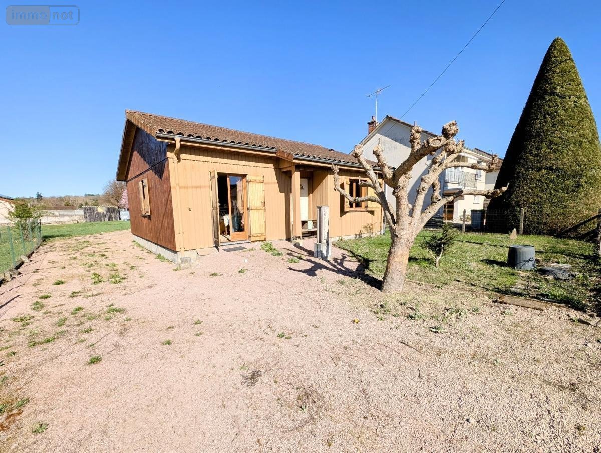 Maison à vendre à LAPALISSE, Au calme sur terrain de 850m², Maison à ossature bois de plain-pied de 2006 d'une surface habitable de 64m² comprenant hall ouvrant sur séjour avec cuisine ouverte (33.66m² l'ensemble), Cellier-buanderie 3.36m², Chambre 1 de 10.56m², Chambre 2 de 10.33m² ouverte sur séjour, dégagement, salle d'eau 3.57m², WC 1.35m², Garage 2 voitures de 25.69m².