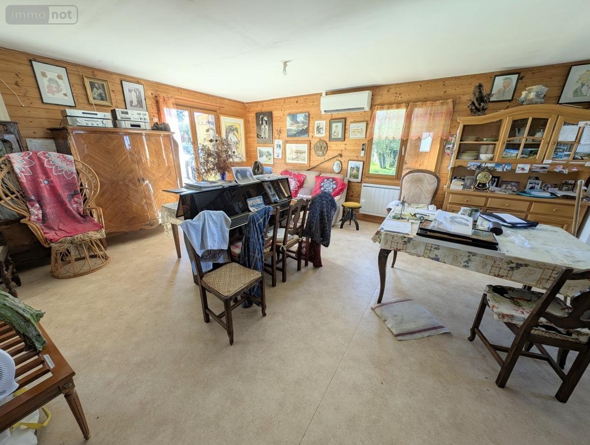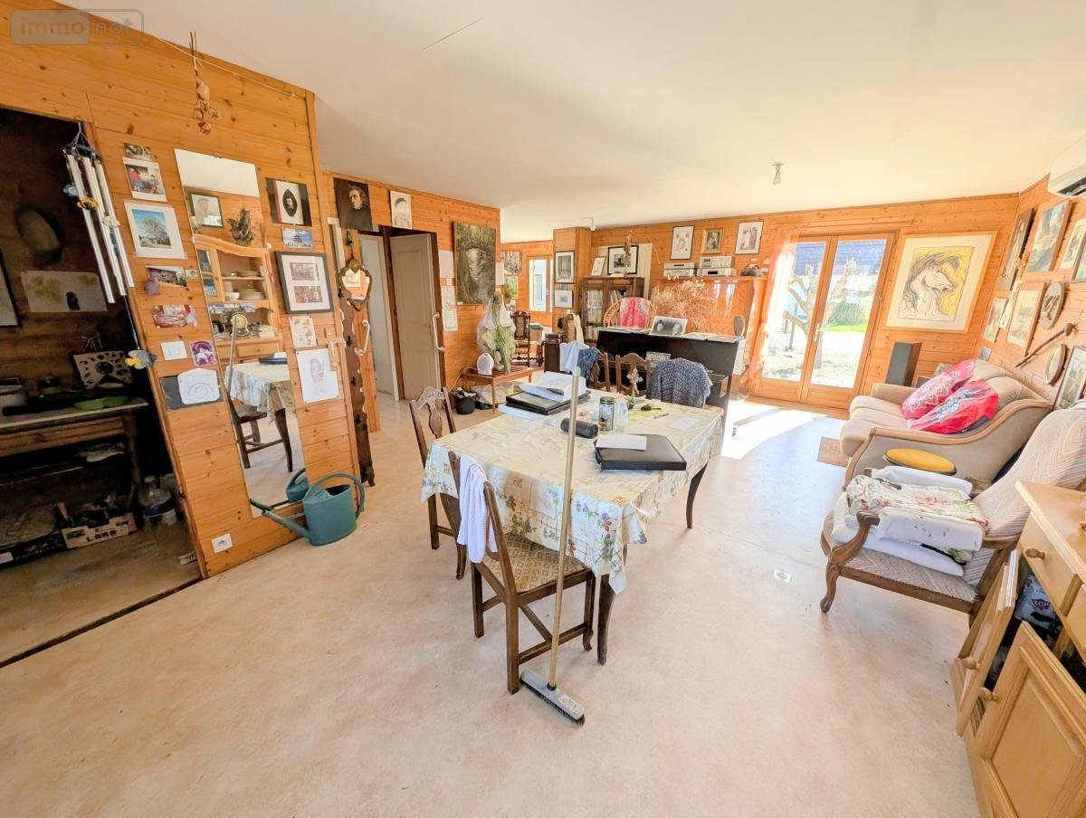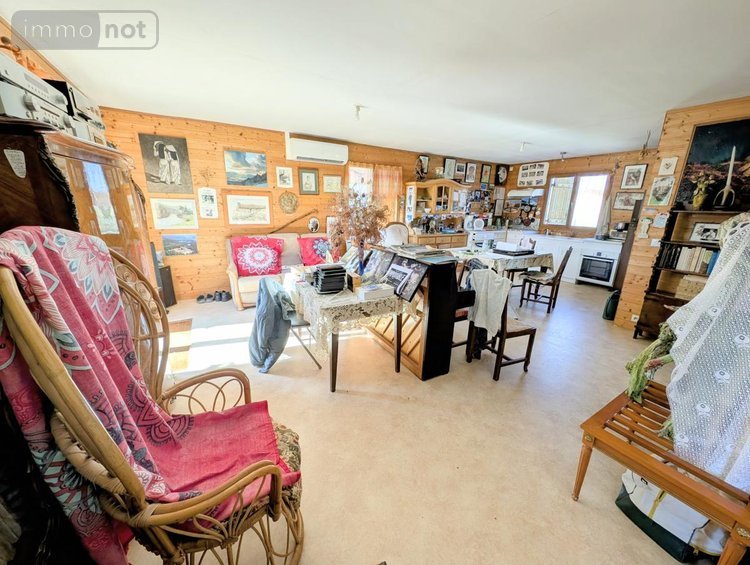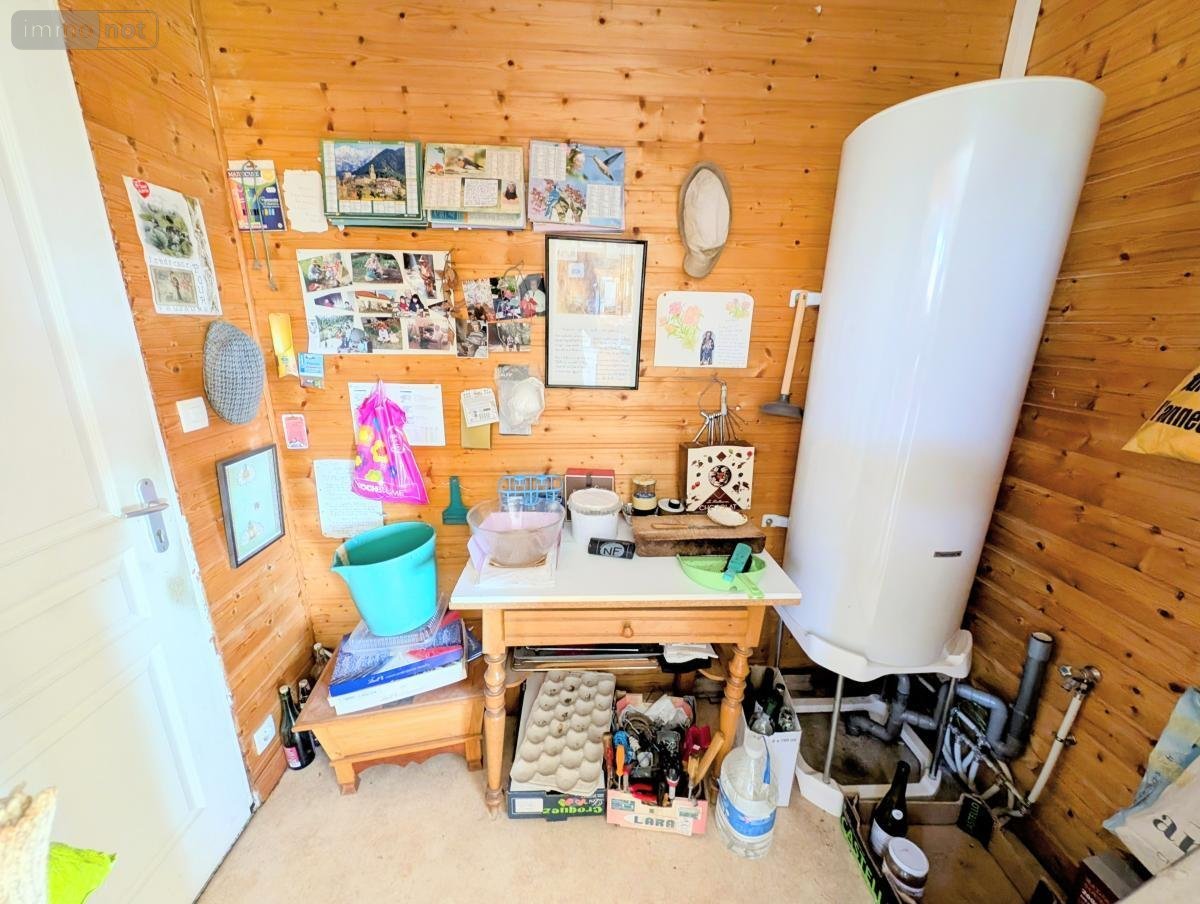 Maison à vendre à LAPALISSE, Au calme sur terrain de 850m², Maison à ossature bois de plain-pied de 2006 d'une surface habitable de 64m² comprenant hall ouvrant sur séjour avec cuisine ouverte (33.66m² l'ensemble), Cellier-buanderie 3.36m², Chambre 1 de 10.56m², Chambre 2 de 10.33m² ouverte sur séjour, dégagement, salle d'eau 3.57m², WC 1.35m², Garage 2 voitures de 25.69m².