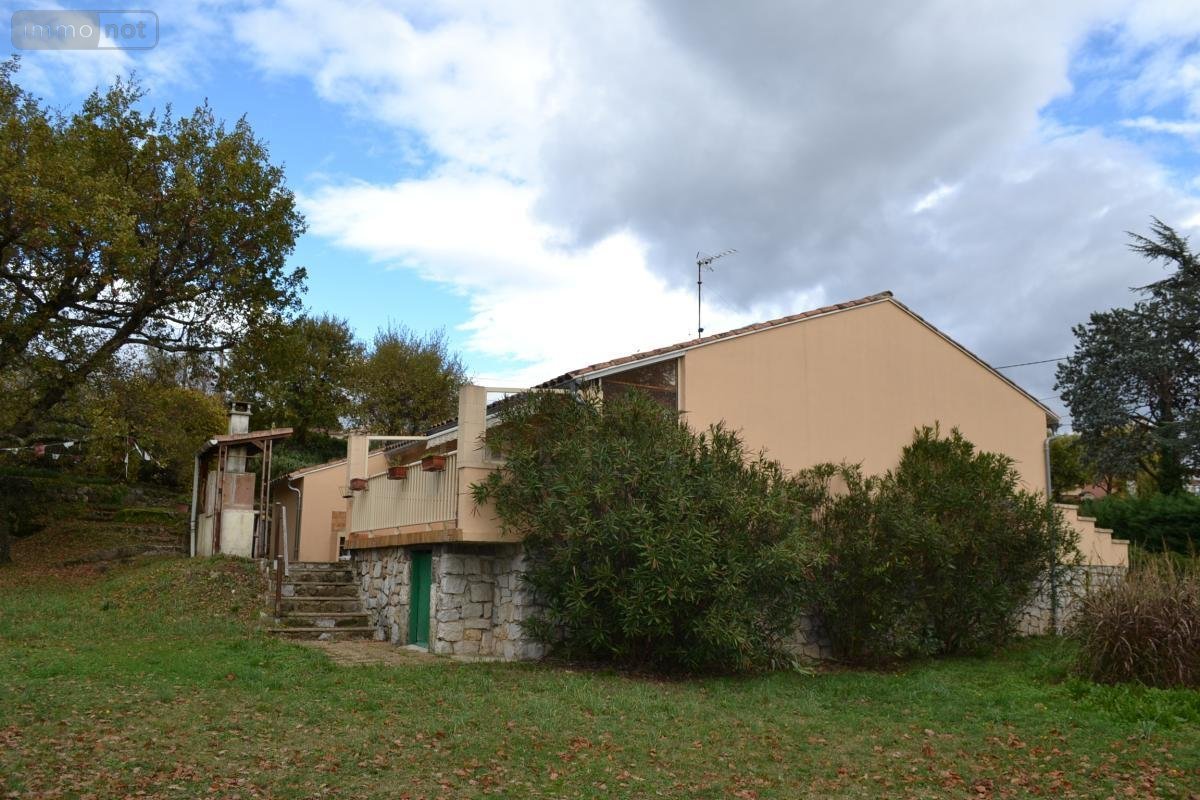 A vendre à Montréal, Ardèche (07) - Une maison individuelle de plain-pied avec terrain attenant de 1002 m² - Construction de 1976 - Garage attenant de 23 m² (portail électrique) - Huisseries en PVC double vitrage et volets roulants électriques - Surface habitable : 97 m² - Hall d'entrée 3,20 m², Couloir de distribution 6,60 m², salon/Séjour 27,90 m², Cuisine 10,80 m², Terrasse 16 m², WC indépendant avec lave-mains 1 m², Salle d'eau 4,60 m² et 4 Chambres 11,60 m², 14,50 m², 7,40 m² et 9,10 m²
