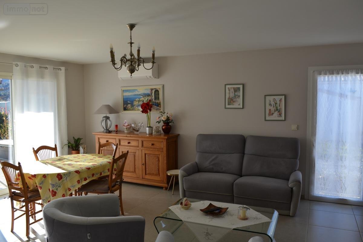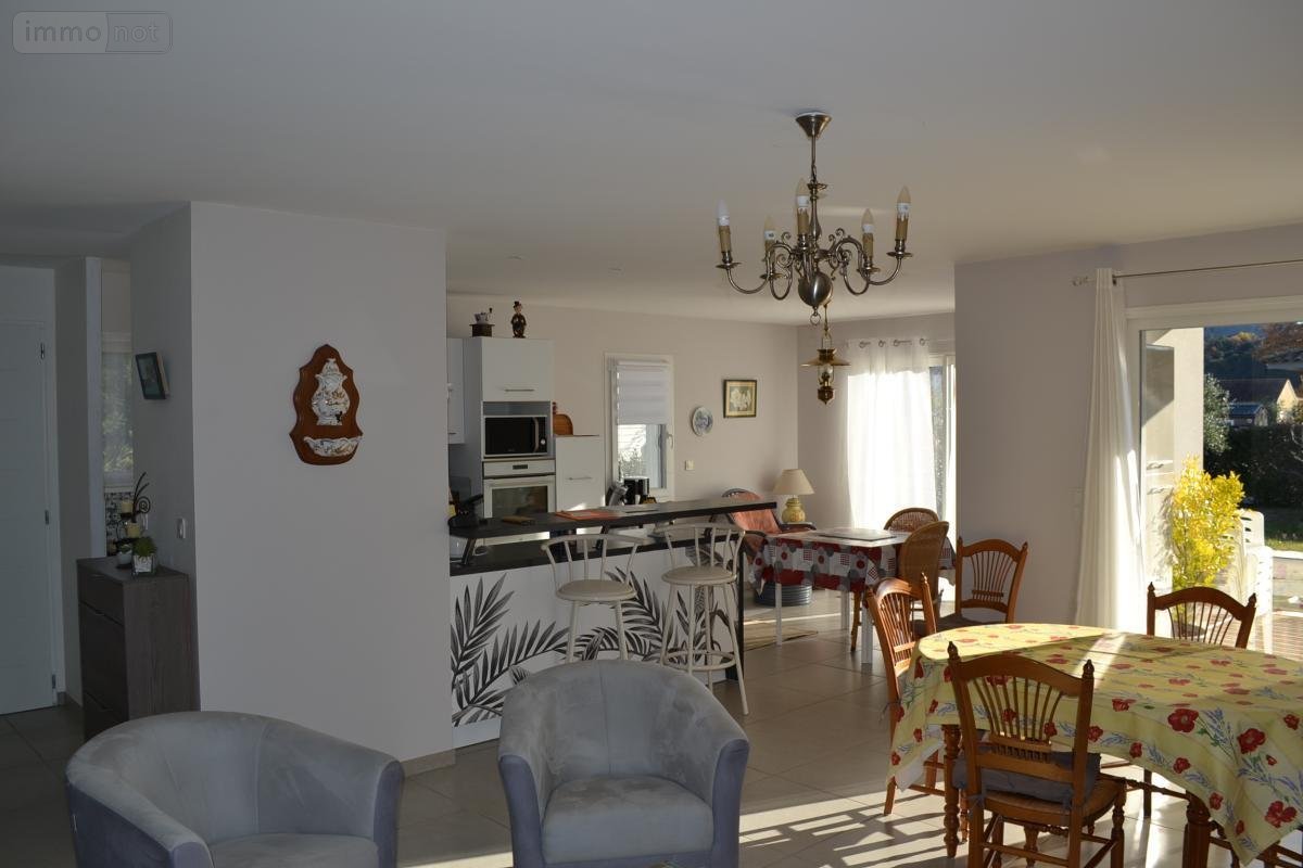 A vendre à Vallon-Pont-D'Arc, Ardèche (07) - Une belle villa de plain-pied 2017 avec terrain attenant de 656 m² agrémenté d'une piscine - Dns un secteur résidentiel, à deux pas de la rivière Ardèche - Bonne exposition et belle vue sur le rocher de Sampzon - Garage attenant 23 m² avec espace Buanderie/Chaufferie 5 m² - Surface habitable : 96 m² - Hall 'entrée 3,80 m², Salon/Séjour/Cuisine 47 m², Couloir de distribution 4 m², WC indépendant avec lave-mains 1,70 m², Salle de bains + douche 3 m², 3 Chambres de 12,70 m², 15,10 m² et 9 m²