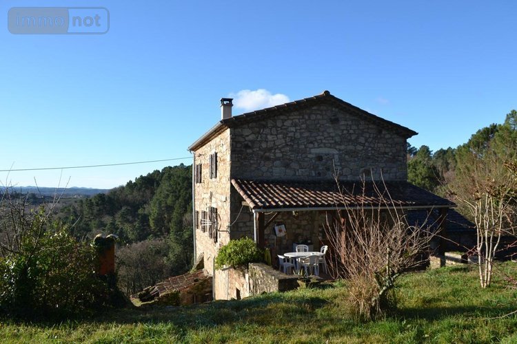 A vendre à Largentière, Ardèche (07) - Une belle bâtisse en pierres avec dépendance et terrain attenant de 5683 m² - Dans un secteur très calme, le terrain exposé plein Sud offre une belle vue dégagée - Assainissement individuel refait aux normes en 2025 - Bâti indépendant en pierres comprenant une remise de 22 m² et un abris voiture de 28 m² - Surface habitable : 109 m² environ - Rez-de-chaussée : Caves voutées 11 m² et 38 m², Cave 17 m² - Etage (accès via une calade) : Terrasse couverte 22 m², Salon/Séjour 31,80 m² (cheminée insert et climatisation réversible), Cuisine 6,30 m², Dégagement 1,90 m², Chambre 8,20 m², WC indépendant 2 m², Salle de bains 4,90 m² - Etage (échelle de meunier) : Palier 4,30 m², Chambre 11,40 m², Débarras 6 m², Chambre 13,10 m², Dégagement 1,60 m², Chambre 8,90 m² Salle d'eau avec WC 7,60 m²