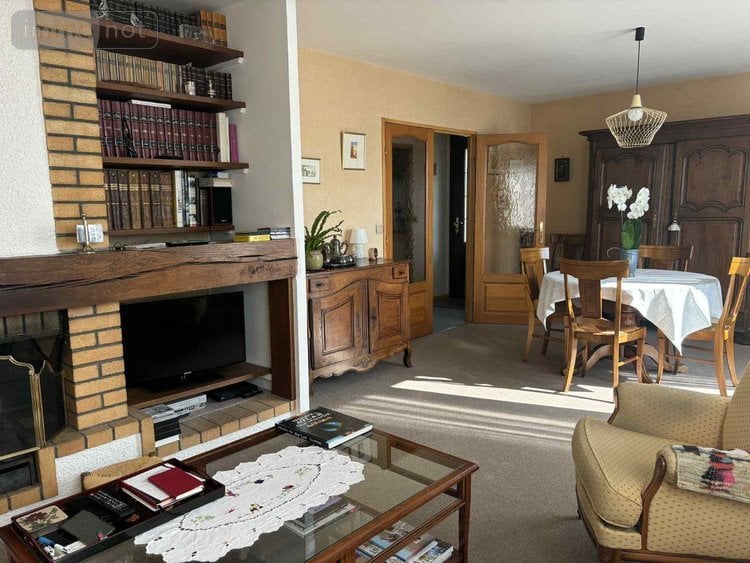 - Entrée, cuisine équipée, salon-séjour avec cheminée à l'âtre donnant sur un balcon, couloir, 4 chambres, une salle de bains avec baignoire, WC indépendante, une salle de douche avec WC.
