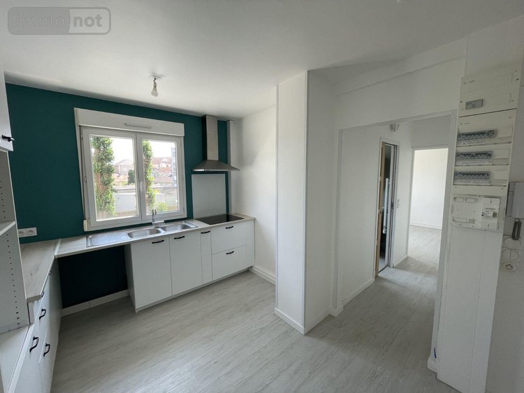 Appartement libre, au 1er étage, de 42 m2 comprenant : cuisine avec placard, un séjour, un couloir, une chambre et une salle de douches avec un WC.