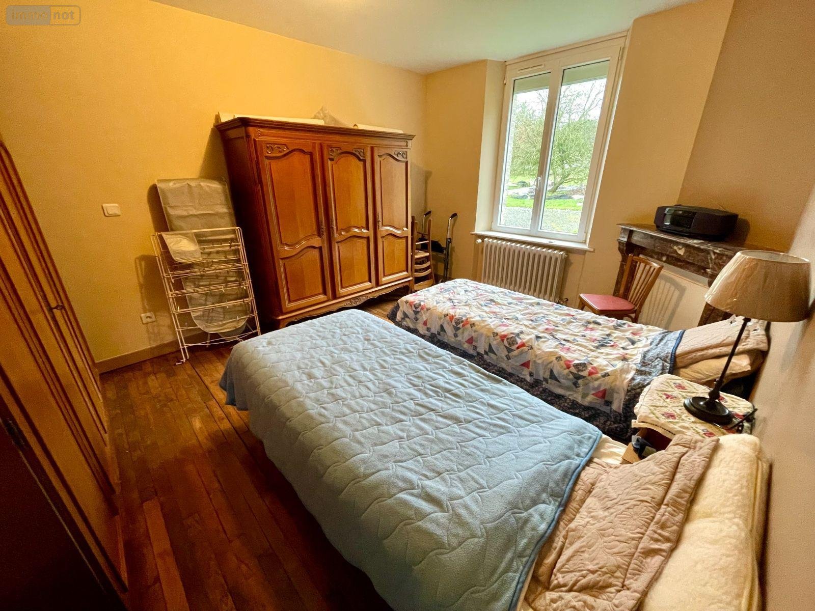 A l'étage : palier, deux chambres, un bureau et une salle de bains avec WC.