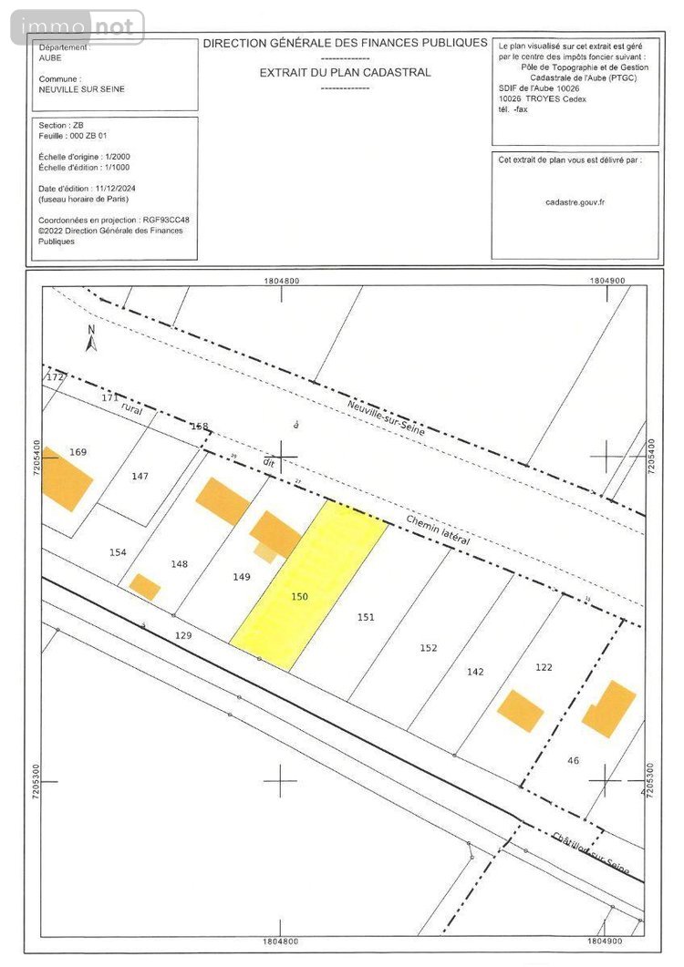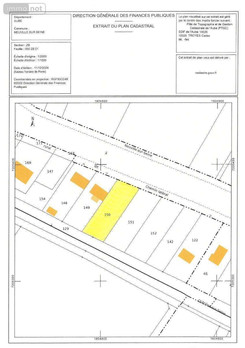 This building plot is located in the commune of Neuville-sur-Seine, in the Aube department. With a total surface area of 1097 m², this plot offers various possibilities for the construction of residential projects.