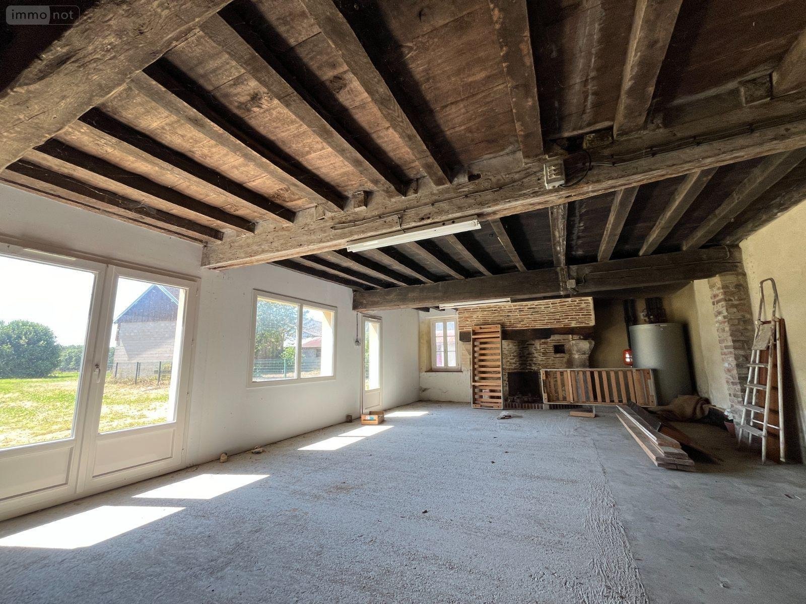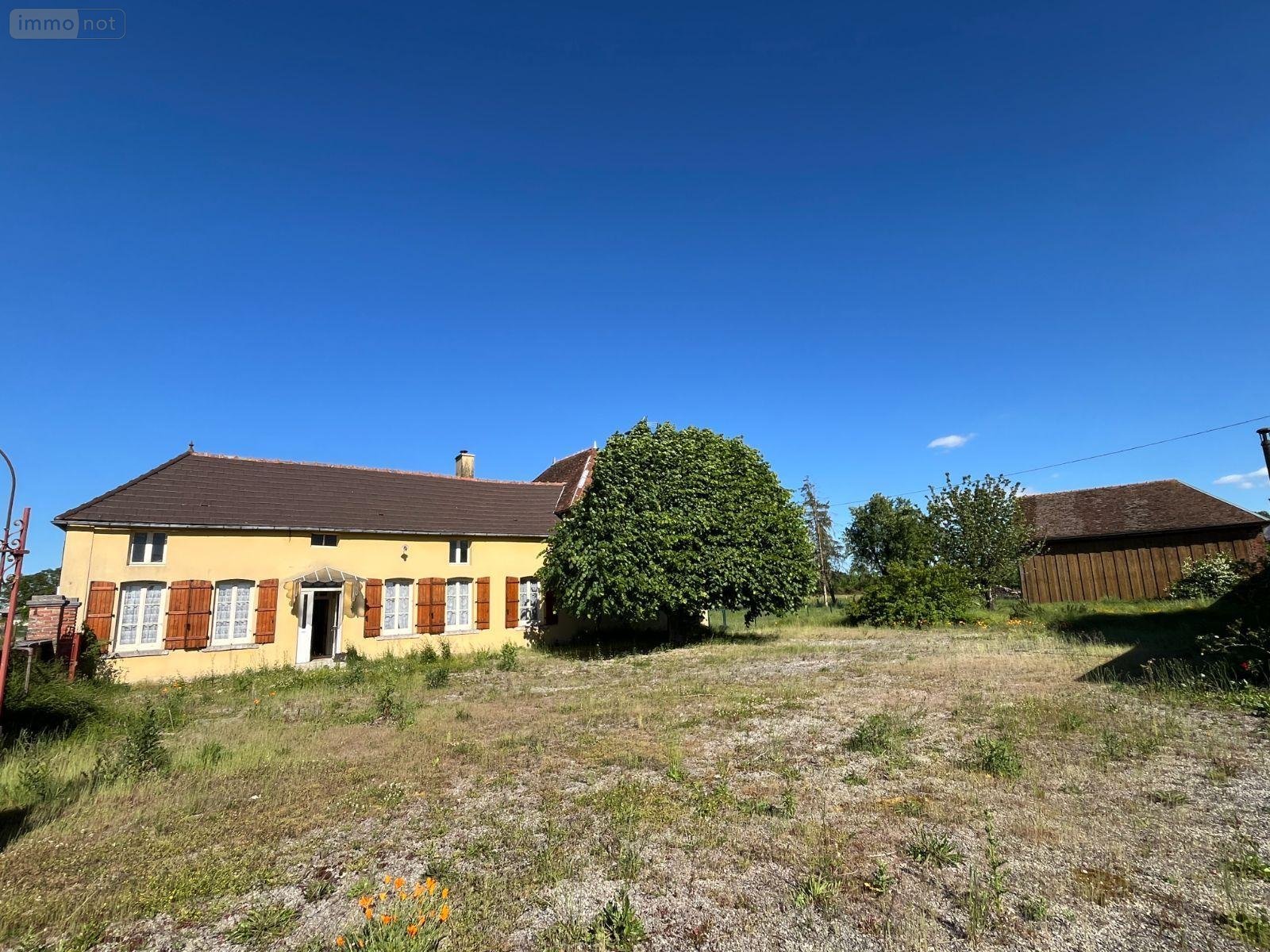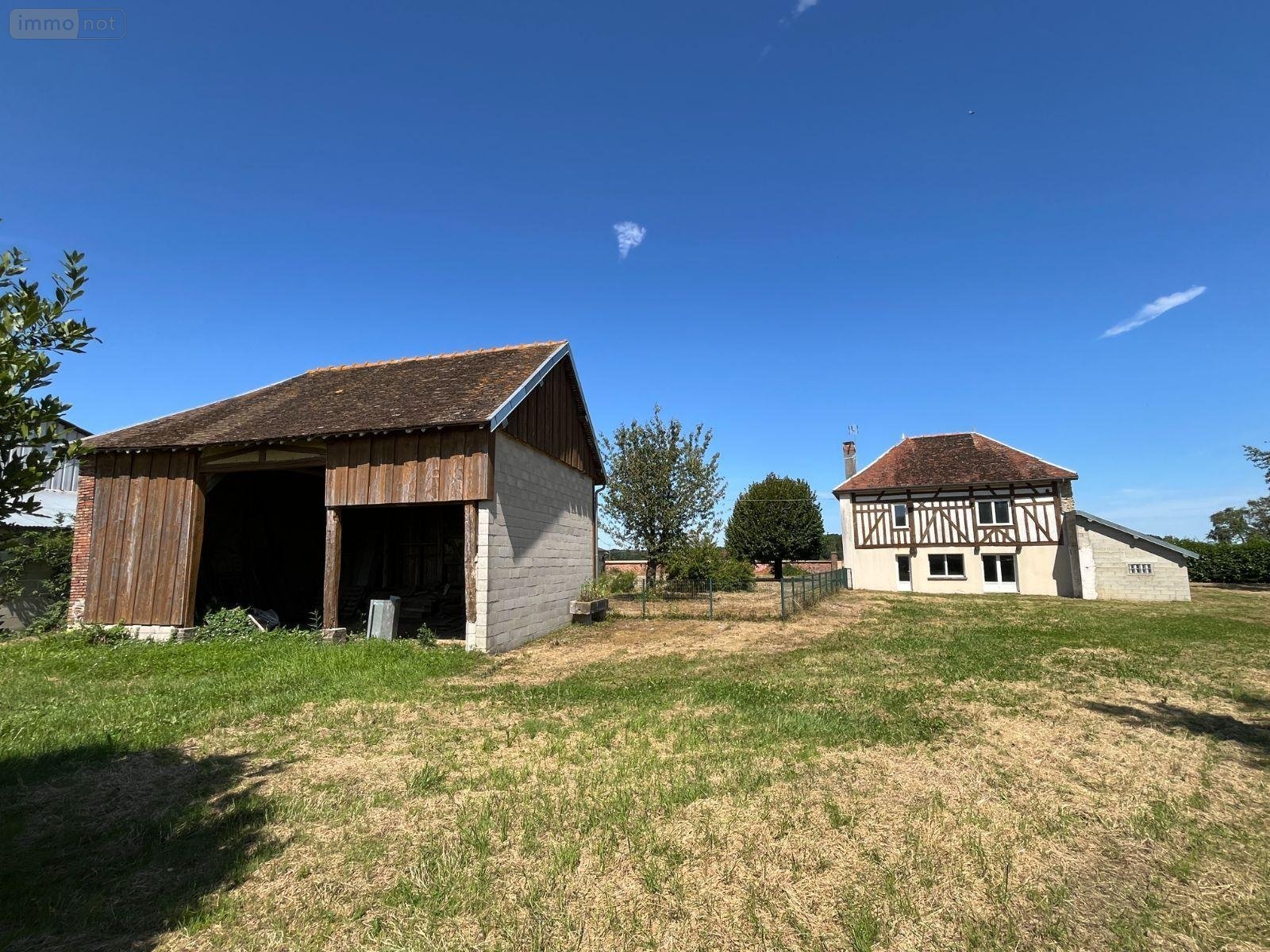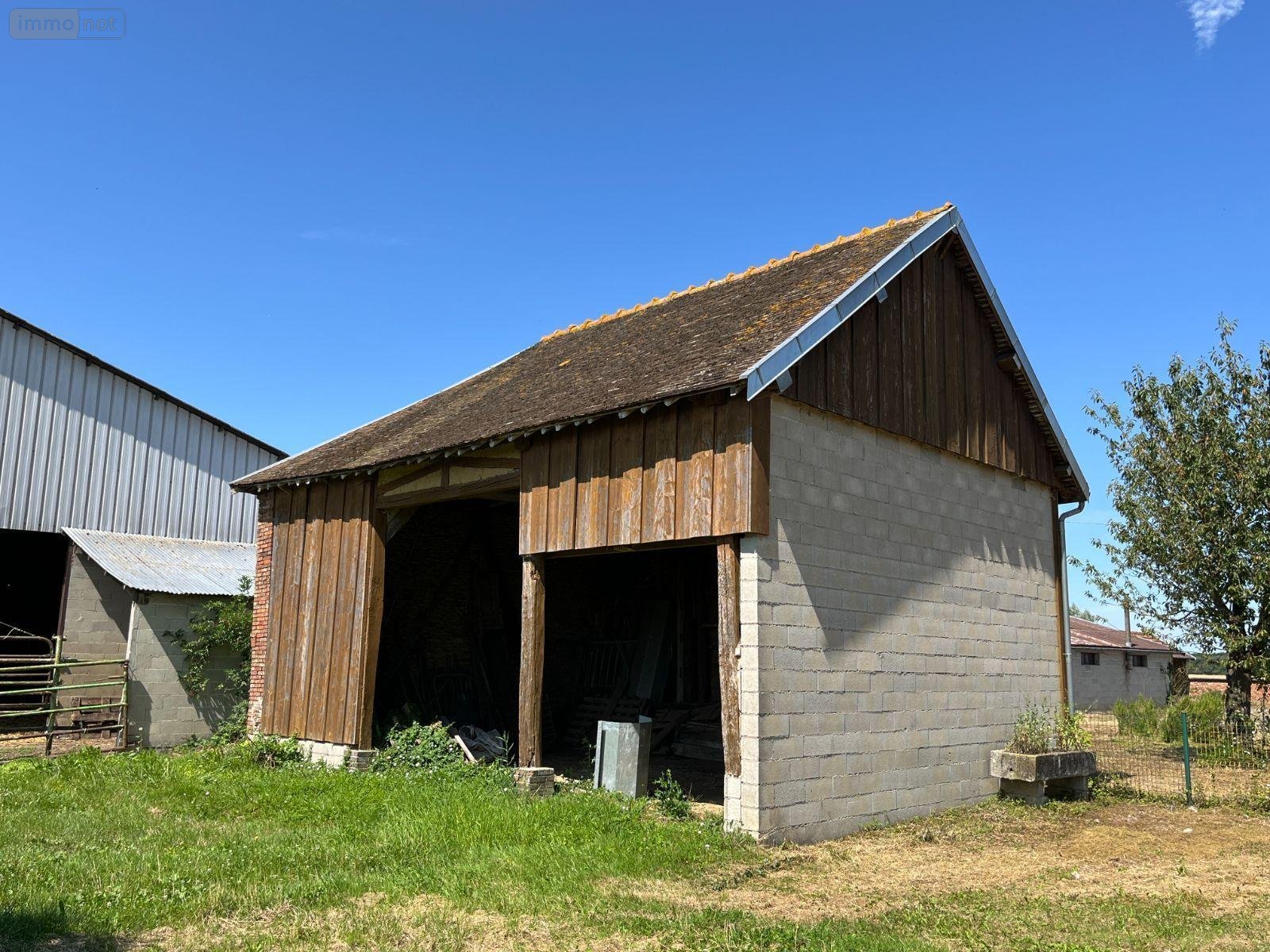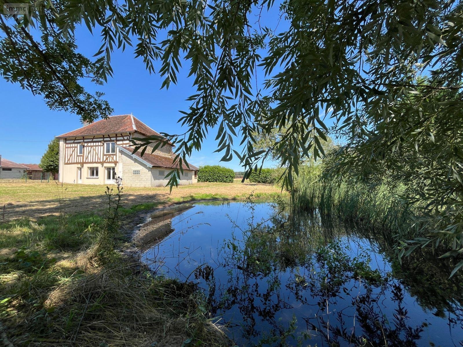 Corps de ferme à vendre à Villemoyenne (10260), AUBE, Hameau du Haut Villeneuve. Maison en pierre de 112 m², entrée, cuisine, salon, salle à manger, 2 chambres, salle d'eau, wc. Grenier aménageable d'environ 56 m². Pièce de 59 m² aménageable. Grange de 64 m². Garage. Sur 5179 m² de terrain avec une mare. Environnement calme et vue sur la campagne. Géothermie.