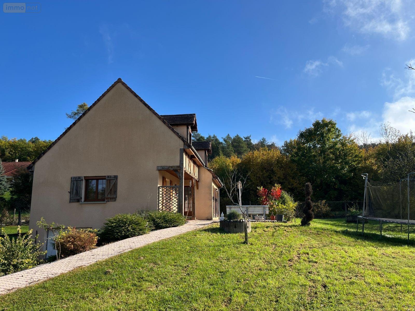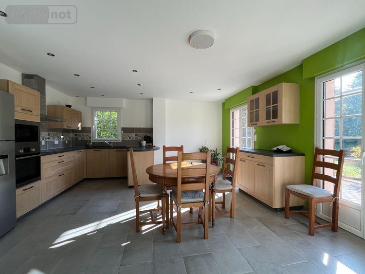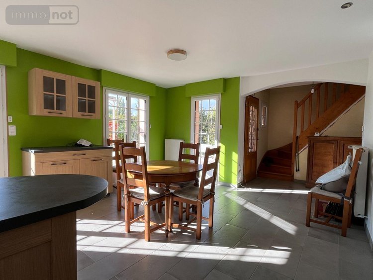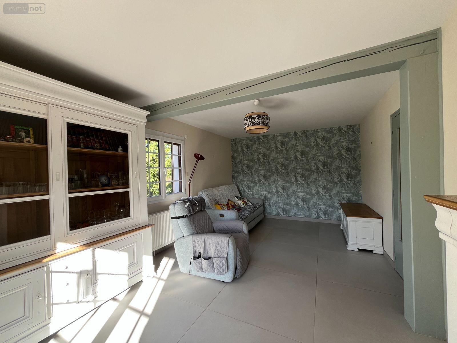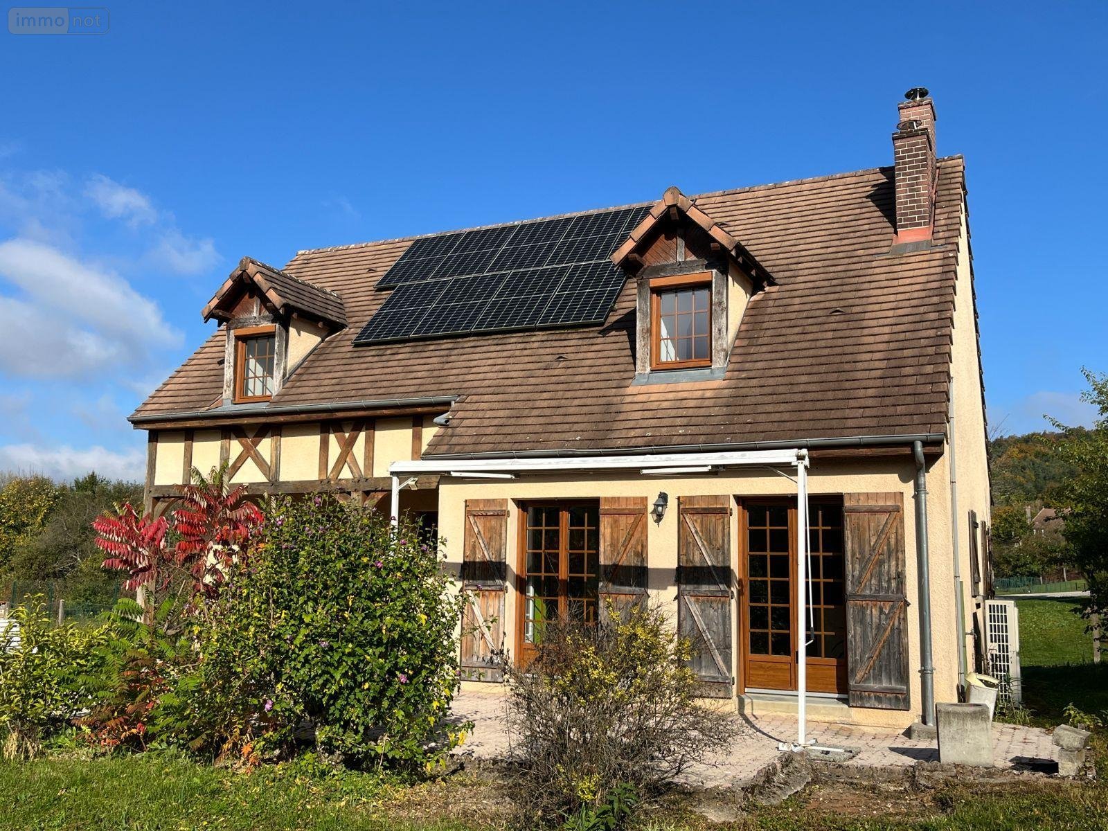Maison à vendre à Mussy sur Seine (10250), AUBE. Pavillon sur sous-sol, 123 m² habitables, comprenant entrée, cuisine équipée, séjour, 3 chambres, 2 salles d'eau, 2 wc. Garage et cave au sous-sol. Pompe à chaleur hybride air-eau (électricité et fioul). Sur 1125 m² de terrain clos.