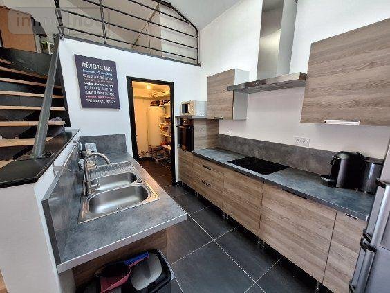 Au rdc : un salon ouvert sur une cuisine équipée, un cellier, une salle de bain avec un wc.