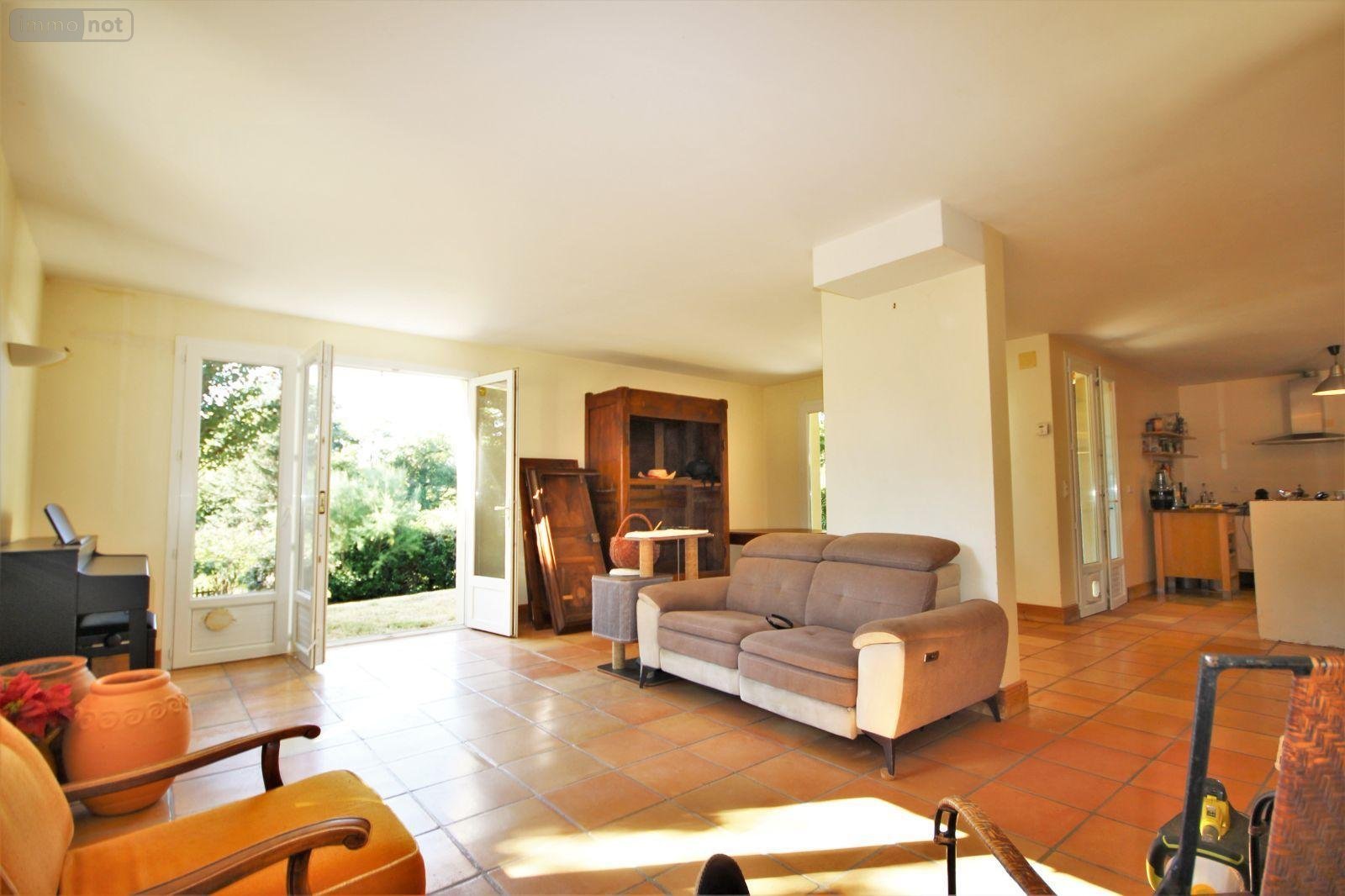 House for sale less than 15 minutes south of Villefranche de Rouergue (Aveyron, South West of France) 115m2 living space on one level, 3 bedrooms on a beautiful wooded and enclosed plot of 0.39acres. The entrance hall opens onto a large living room of 37m2 and an open-plan kitchen of 14m2 with direct access to the shaded terrace. A corridor leads to the night area, comprising 3 bedrooms with fitted wardrobes (11.2m2, 11.6m2 and 12.2m2), a separate WC with washbasin, a 6m2 shower room and a boiler/laundry room. The house has PVC double glazing, underfloor heating in the day area and radiators in the night area, powered by a heat pump. The house is in very good general condition, with only the individual drainage system needing to be brought up to standard. Quiet but not isolated, you will find schools and shops 4 minutes away, colleges and doctors 7 minutes away, hospital, SNCF train station and lycées 15 minutes away. For further information or to arrange a viewing, please contact Sophie GAGNEBET's NOTARY OFFICE on: +33(0)5.65.65.71.60