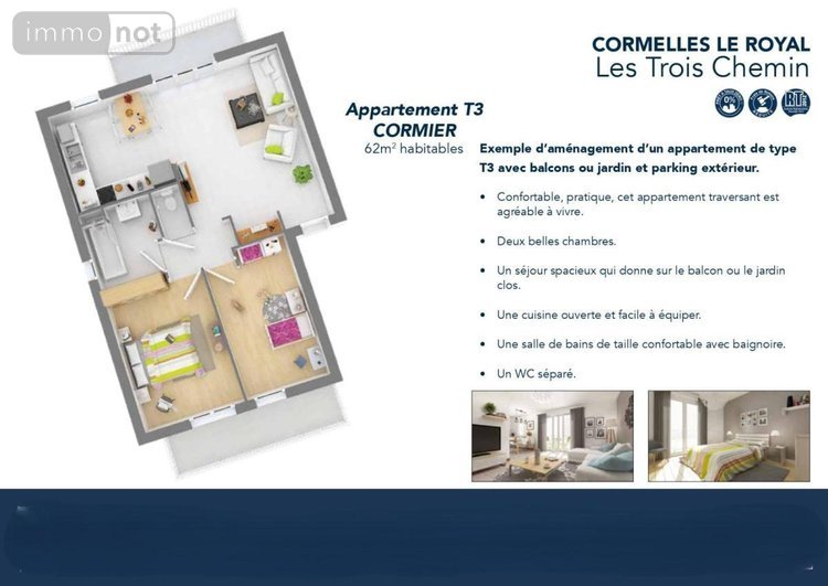 Appartement de 62m² comprenant pièce de vie de 30m², 2 chambres, salle de bains, WC, balcon et place de parking. Non soumis au DPE, frais de notaires réduits. Livraison prévue 3éme trimestre 2026. Coordonnées négociateur : Jean-Charles JOUE, Mobile : 06.82.05.56.24, Email : [email protected];