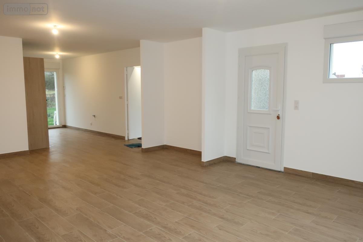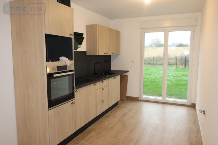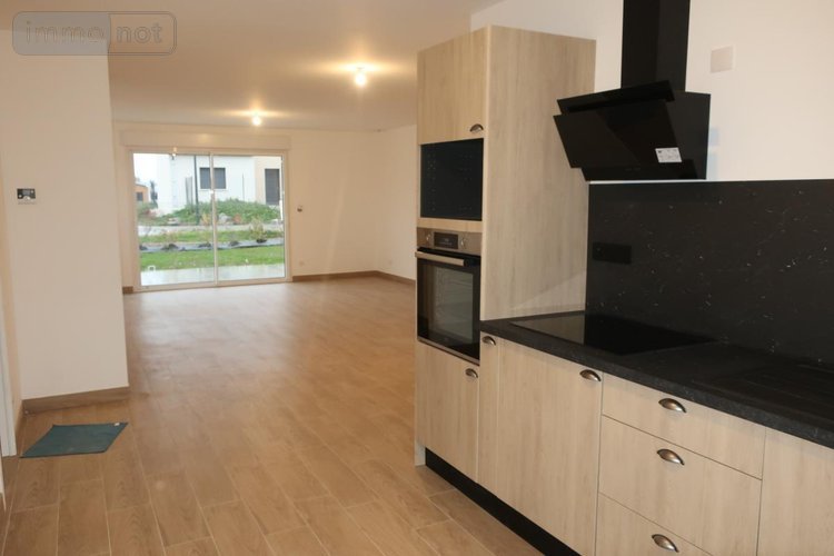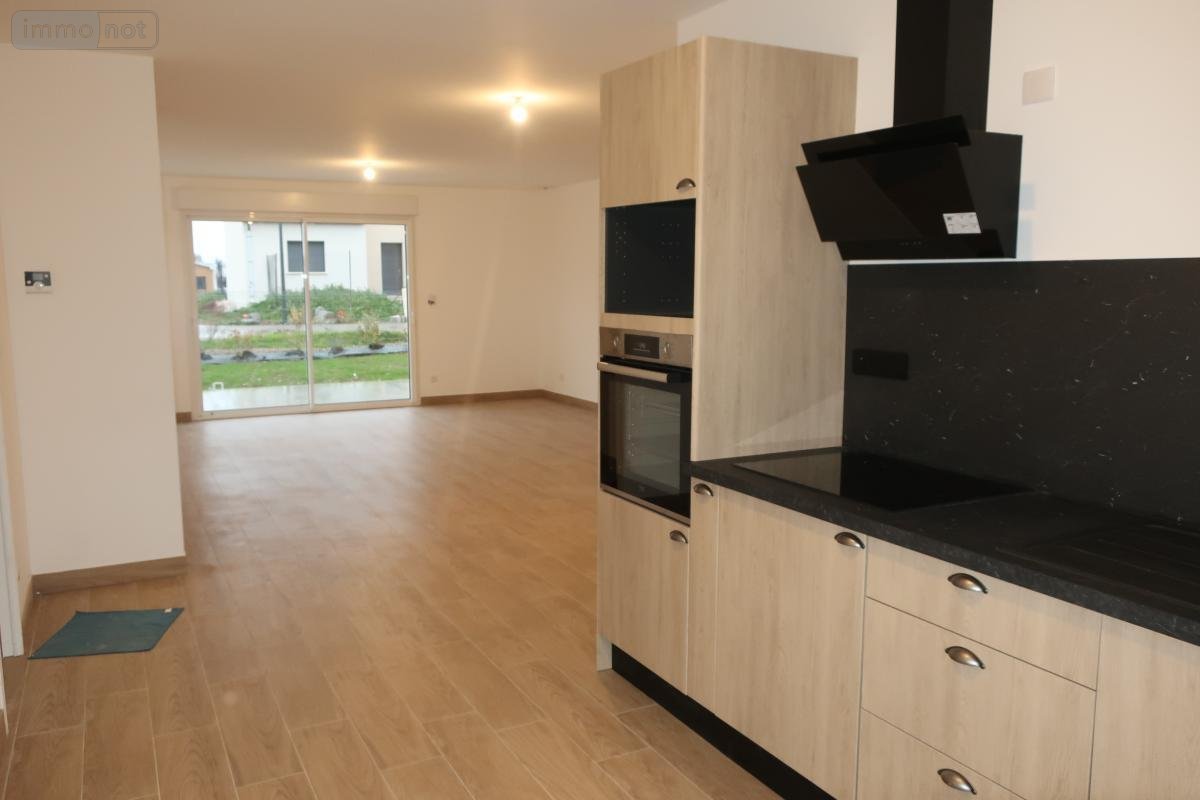 Maison neuve individuelle F4 de plain-pied comprenant séjour avec cuisine ouverte aménagée et équipée de four, plaques induction et hotte, wc, trois chambres dont une attenante à la salle d'eau avec wc.