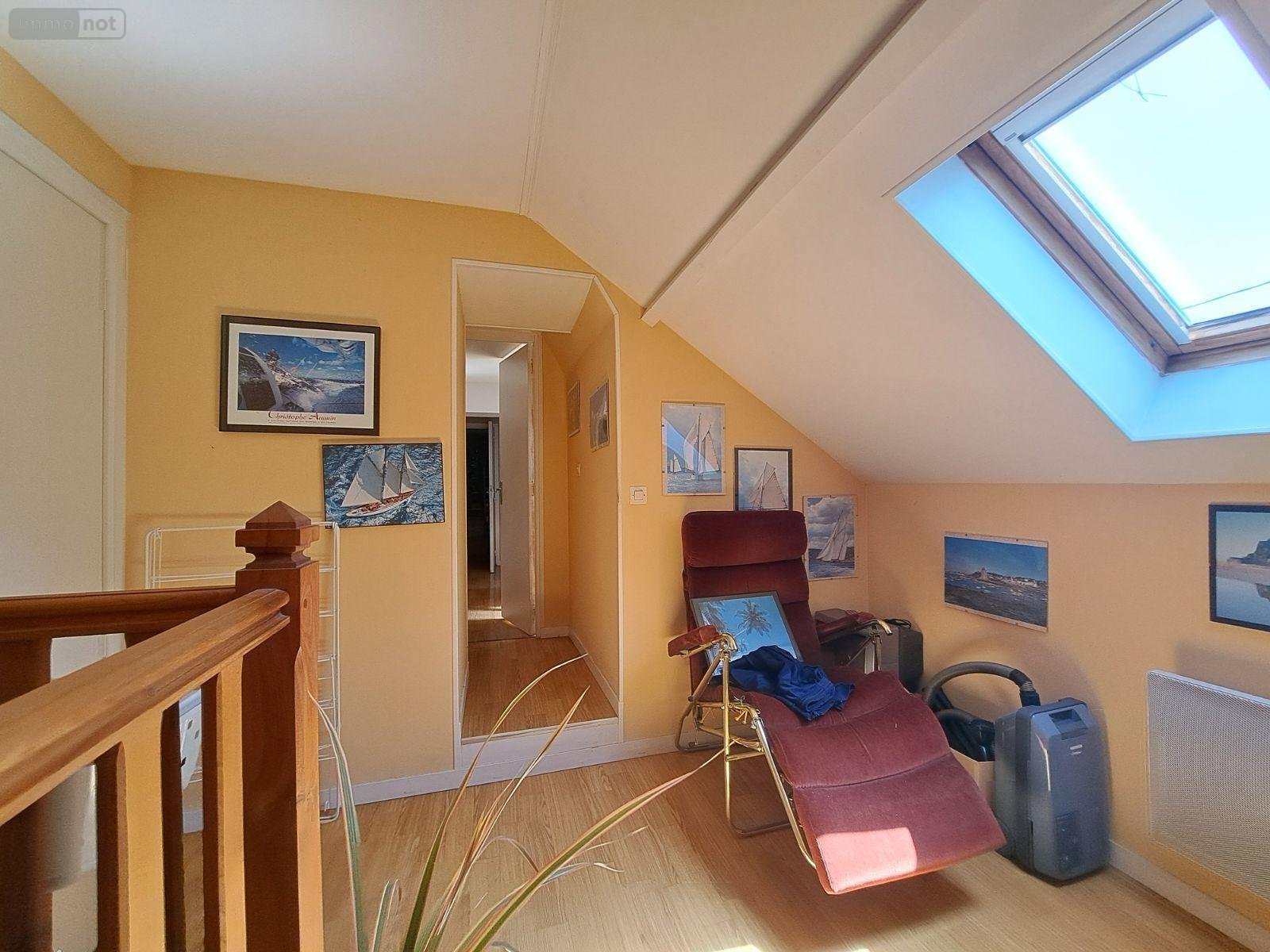 A l'étage: Palier desservant un chambre et un bureau en enfilade, et un grenier: