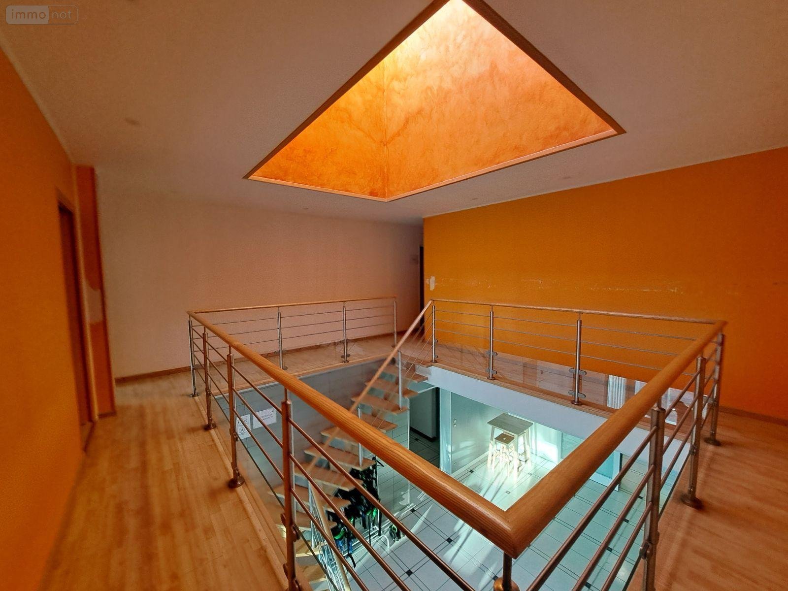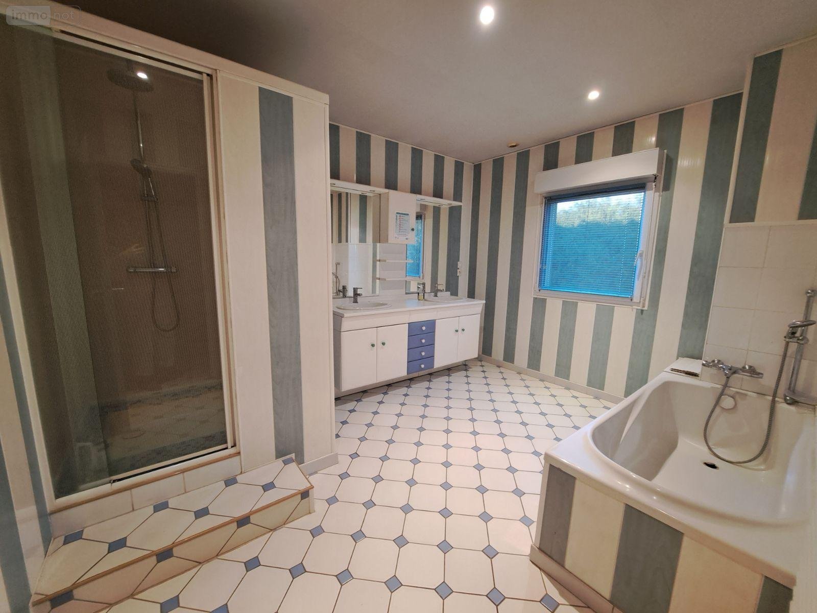 A l'étage: mezzanine desservant trois chambres, une grande salle, une salle de bain avec douche et baignoire, un débarras, W.C séparé et placard;