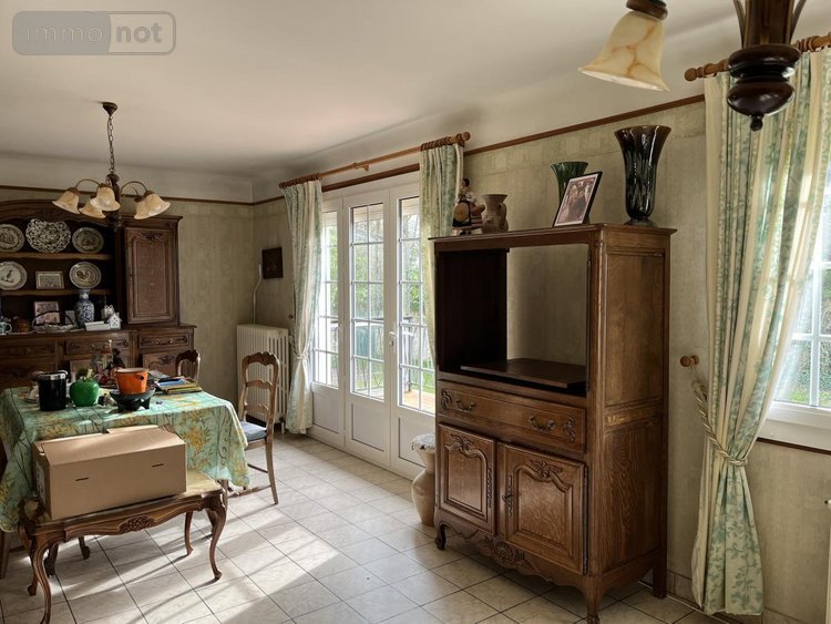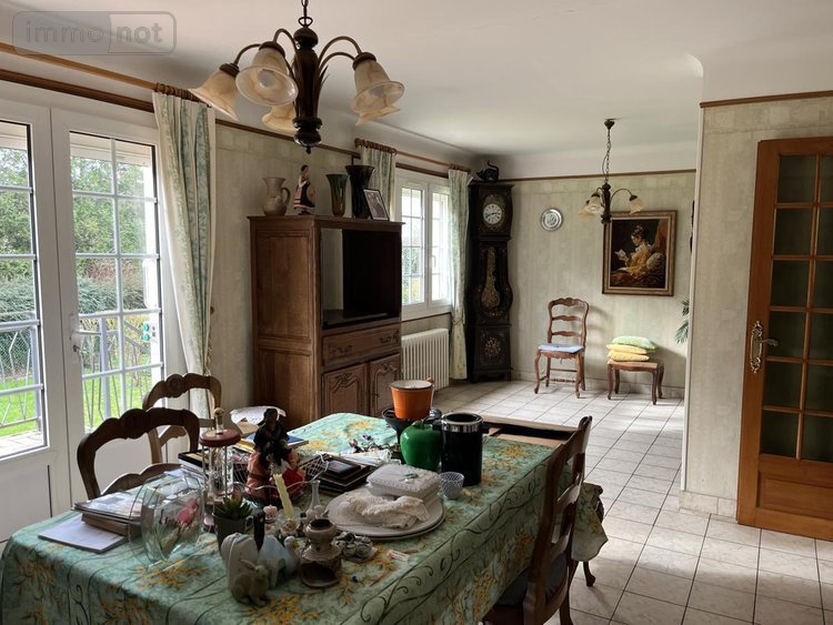 Sur sous-sol complet, maison de construction traditionnelle, jumelée sur un côté, comprenant au rez-de-chaussée surélevé : entrée avec rangements, cuisine, séjour-salon, deux chambres, salle d'eau, wc. Jardin clos.