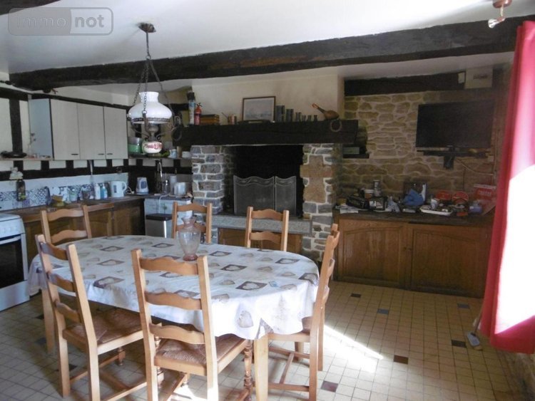 - au rez-de-chaussée : un séjour avec cheminée et poutres, une grande cuisine avec coin-repas, une chambre avec dressing, un W.C. avec lave mains, une chaufferie.