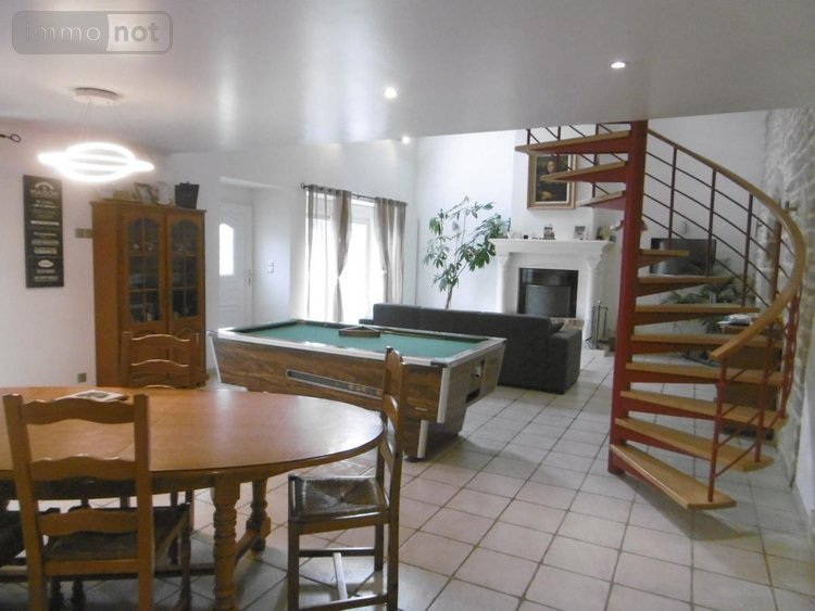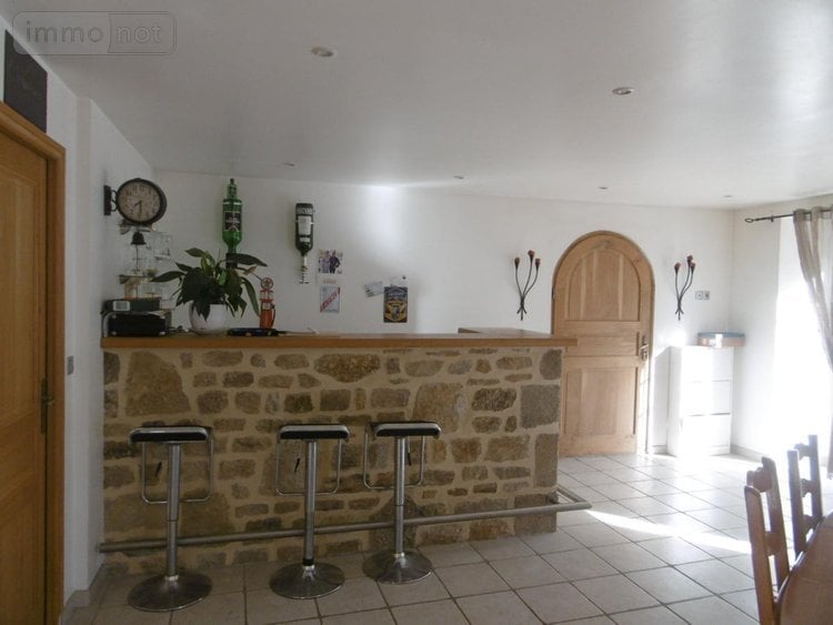 - au rez-de-chaussée : une grande pièce de vie (salon- salle à manger avec plafond cathédrale) et cheminée insert, une grande cuisine aménagée, une chambre, une salle de bains avec placards, un W.C., à la suite atelier, bureau et garage,