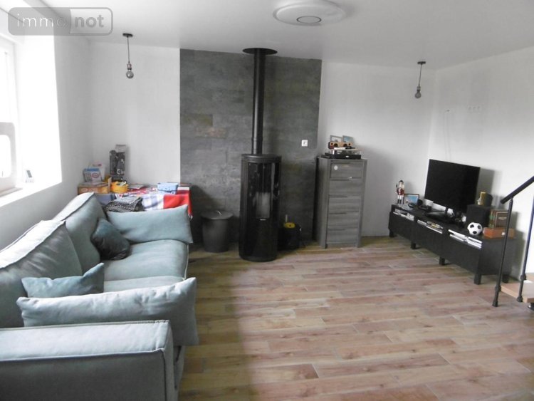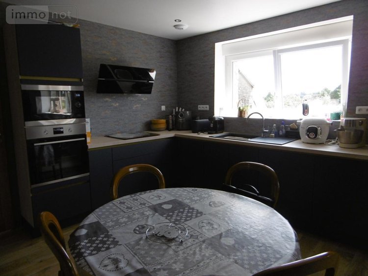 - rez-de-chaussée : une entrée, cuisine aménagée avec coin repas, séjour avec poêle à granulés, WC suspendu, salle d'eau, buanderie,