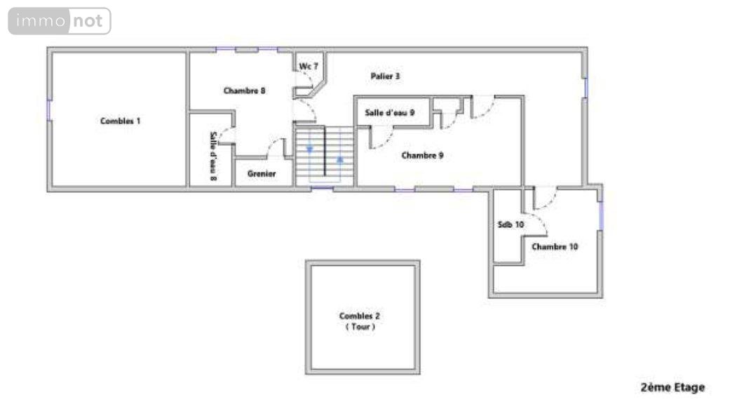 Le dernier étage comprend 3 chambres à rénover, chacune avec sa salle d'eau privative, ainsi qu'un salon.