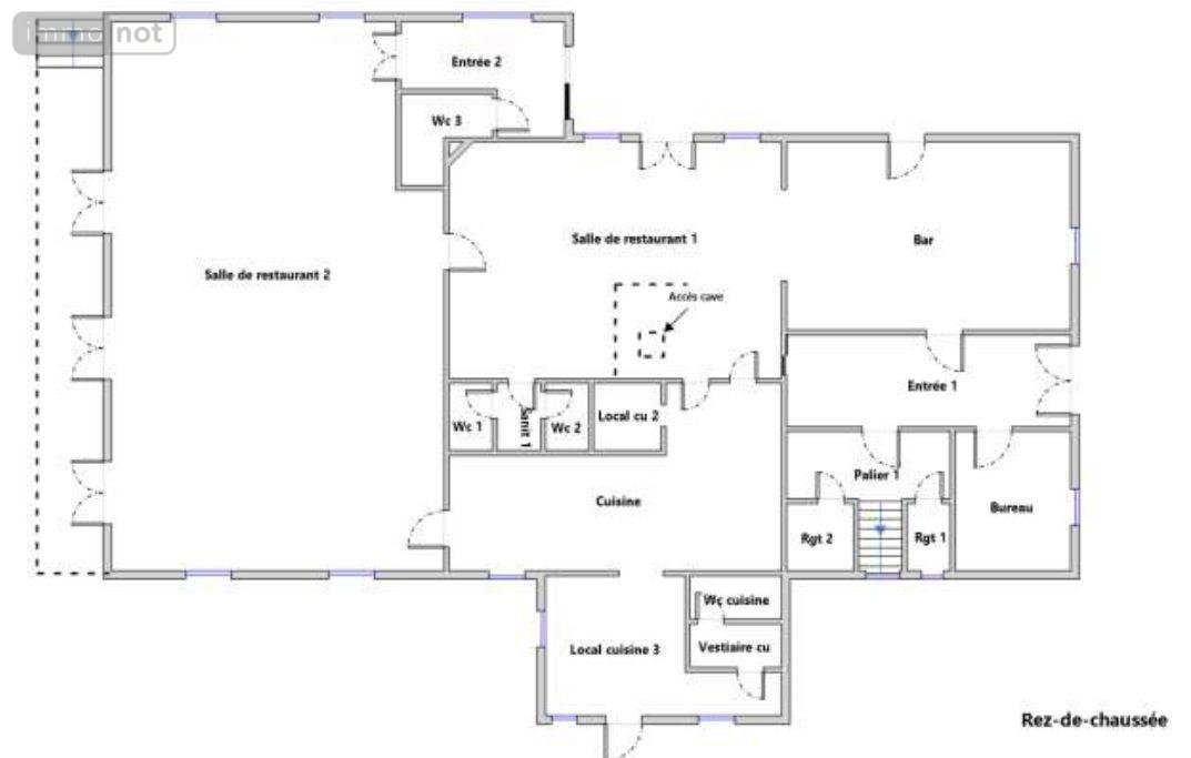 Venez découvrir cet ancien hôtel-restaurant offrant un large potentiel. Au rez-de-chaussée, vous trouverez une entrée avec sanitaires, une salle de restaurant avec accès à la terrasse, un espace bar, des sanitaires PMR, une cuisine avec sanitaires, un vestiaire, un bureau d'accueil et une cave voutée.