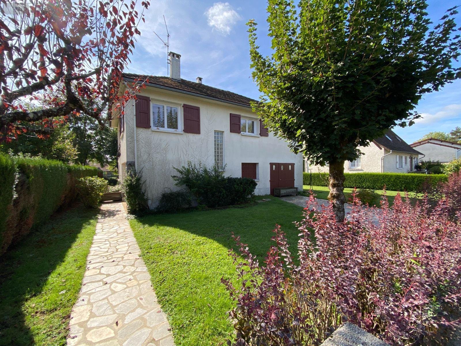 AURILLAC, maison d'habitation actuellement à usage de bureaux comprenant, RDC : entrée sur hall, salon/séjour, cuisine donnant sur jardin, chambre, débarras avec chauffe-eau électrique, salle d'eau avec W.C, garage Etage : cuisine donnant sur balcon, salon/séjour/salle à manger avec cheminée ouverte, salle de bains, W.C séparé, deux chambres avec placards, couloir avec placards et débarras