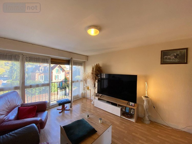 AURILLAC, appartement loué au 3ième étage d'un immeuble avec porte d'entrée sécurisée et ascenseur comprenant, entrée avec deux placards, cuisine avec balcon, salon, deux chambres, salle de bain et WC. Place de parking en sous-sol et cave