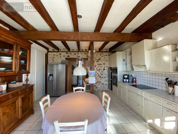 - rez-de-chaussée : entrée, salon avec cantou et poêle à bois, salle à manger, cuisine dinatoire, chambre, salle d'eau, WC, buanderie,