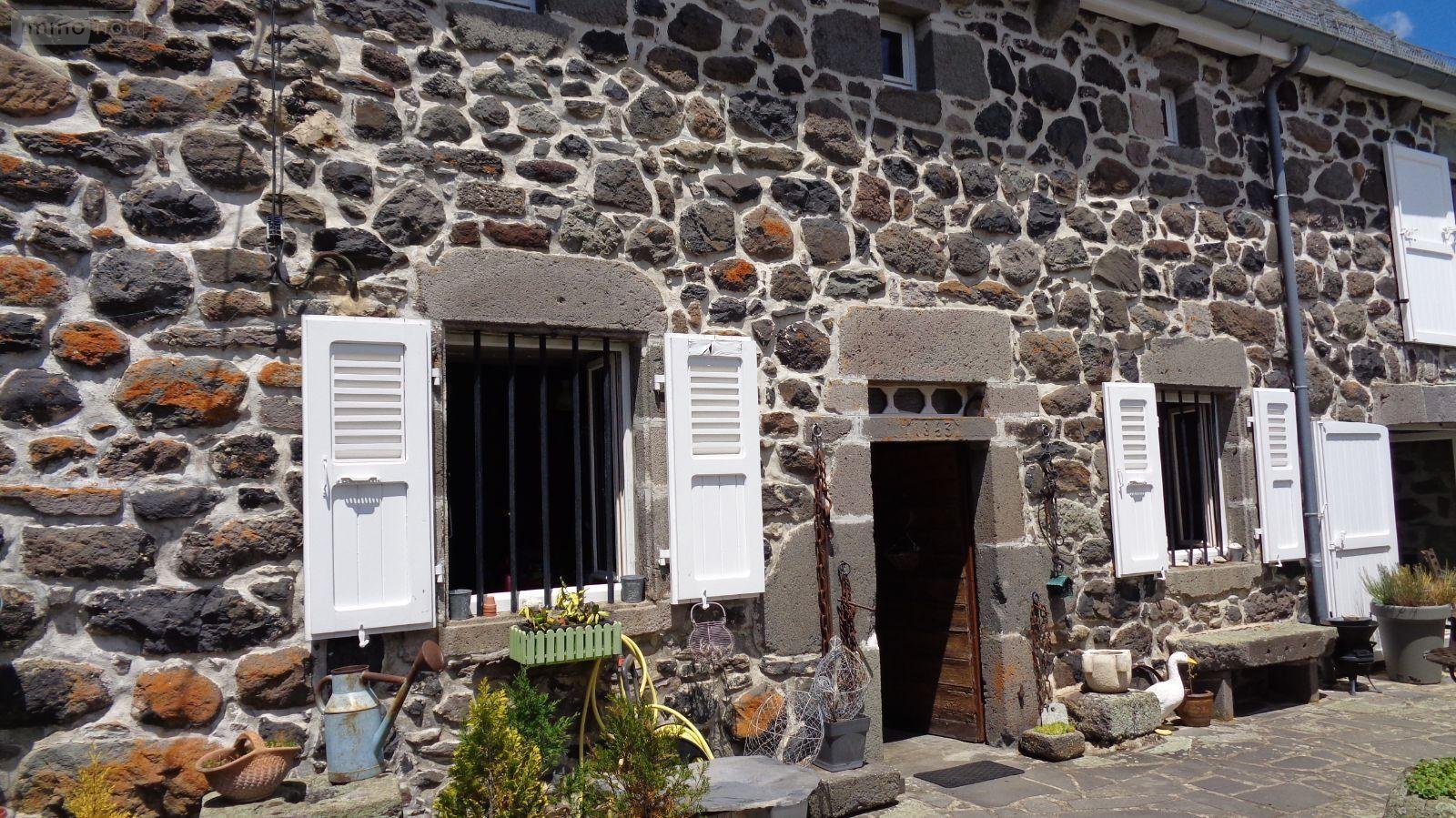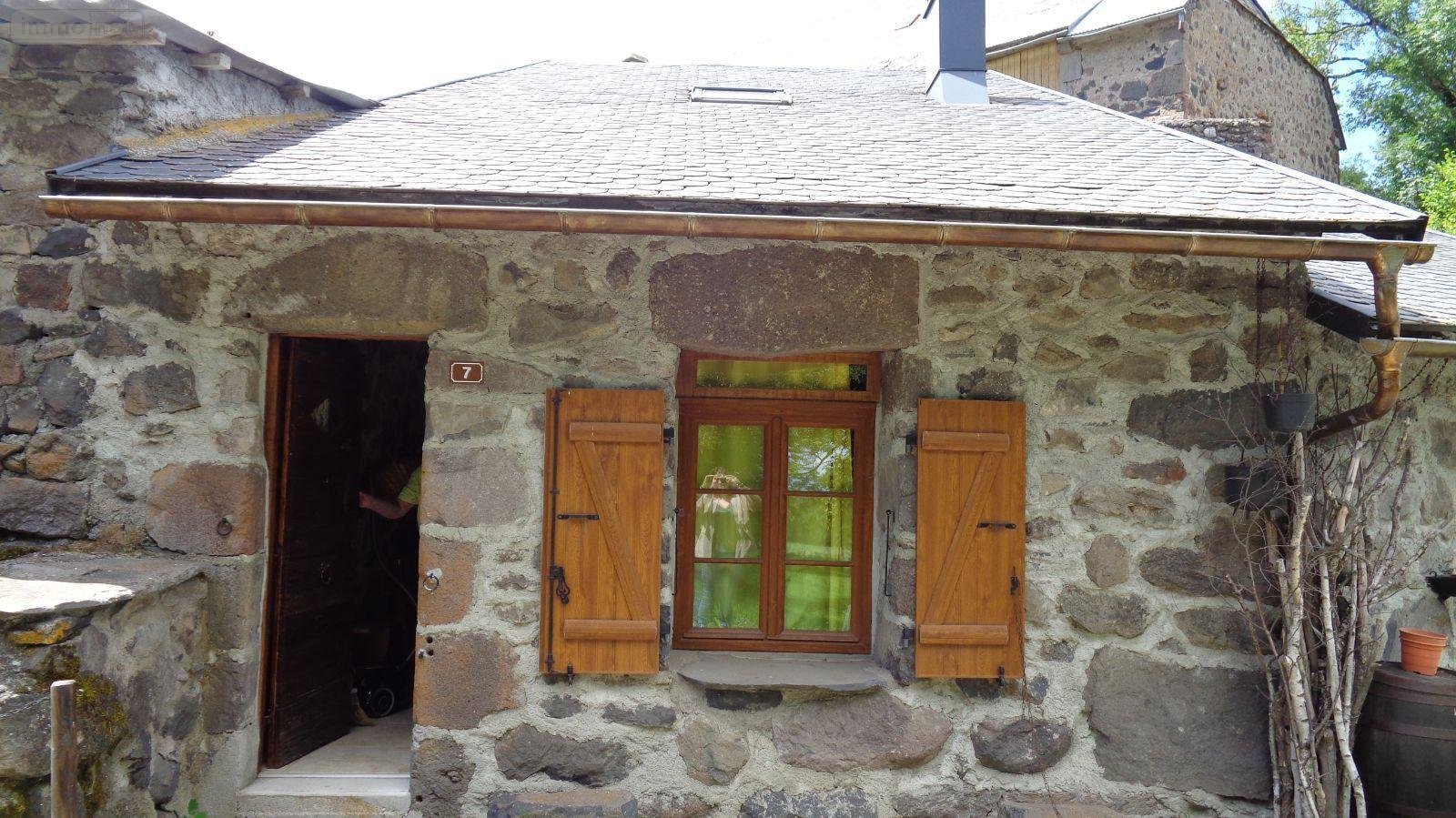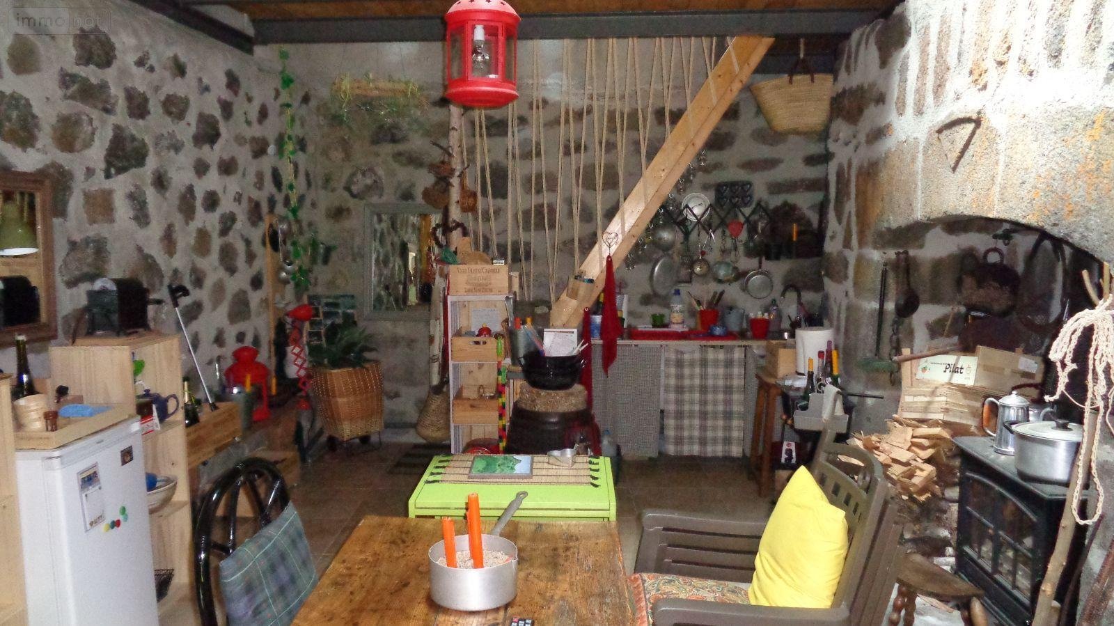 Proximité Laveissenet, charmante maison auvergnate comprenant pièce de vie avec alcoves, grande espace salon- salle-à-manger avec cantou,chambre, salle d'eau, WC, à l'étage : grange aménagée avec trois chalets en bois à usage de chambres, un chalet avec lavabo et WC sanibroyeur,