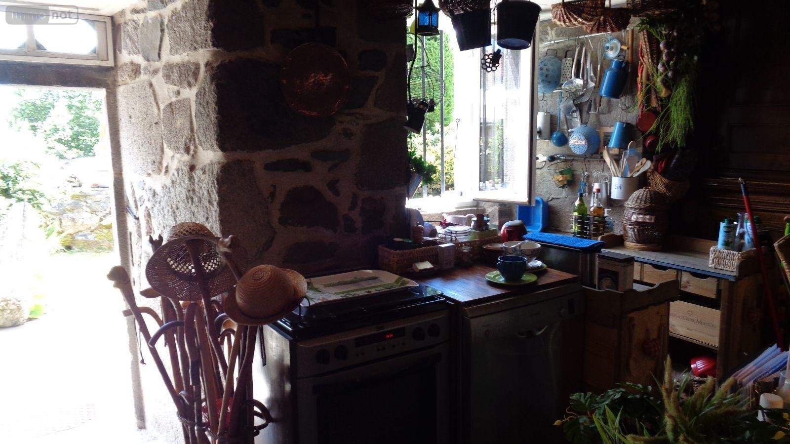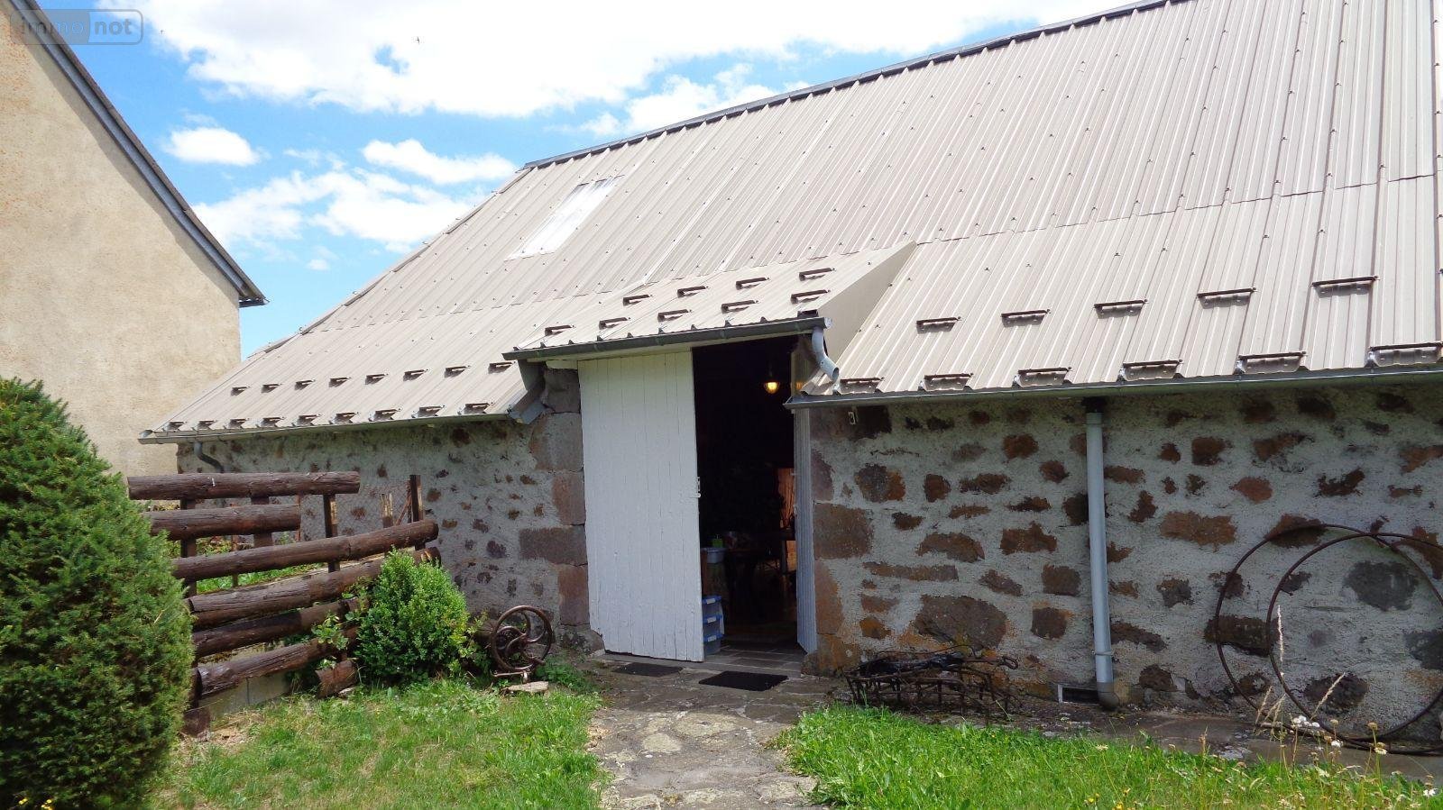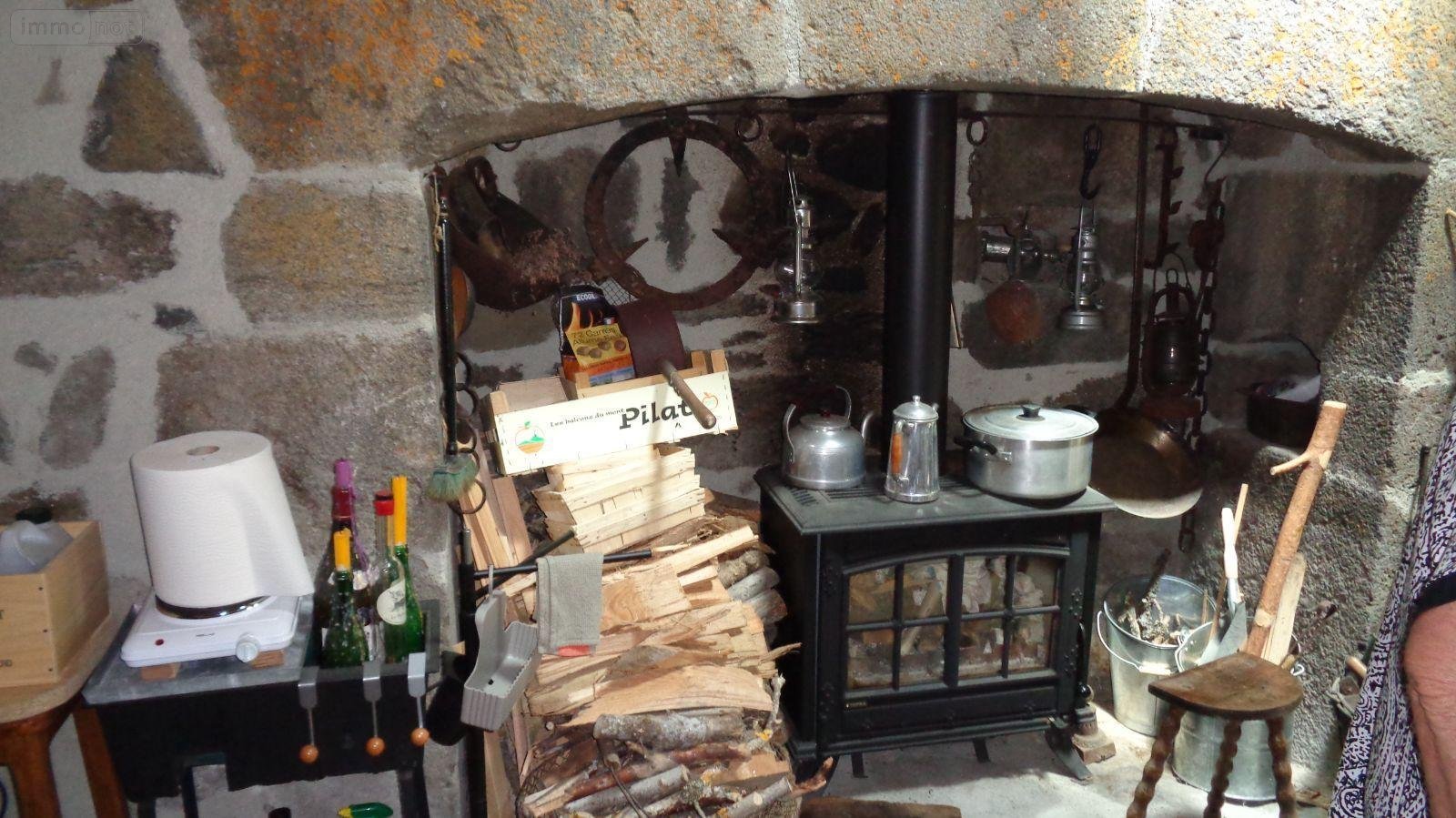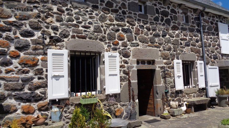 Proximité Laveissenet, charmante maison auvergnate comprenant pièce de vie avec alcoves, grande espace salon- salle-à-manger avec cantou,chambre, salle d'eau, WC, à l'étage : grange aménagée avec trois chalets en bois à usage de chambres, un chalet avec lavabo et WC sanibroyeur,