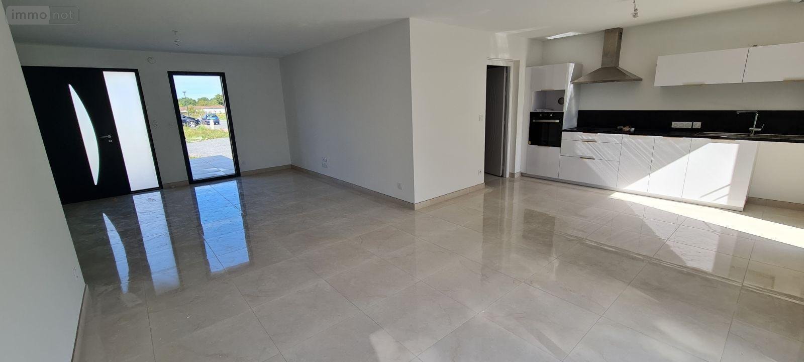 Situé au calme et à proximité de tous les commerces Maison neuve RE 2020 superficie 87,15 m² ,aménagement haut de gamme, comprenant : pièce de vie avec cuisine ouverte aménagée et équipée de 44 m², dégagement, trois chambres avec placard, wc, salle d'eau avec wc; garage isolé/buanderie , deux terrasses de 24 m² carrelées, jardin clos de 513 m², jardin supplémentaire de 162 m². Vous n'avez plus qu'à poser vos valises