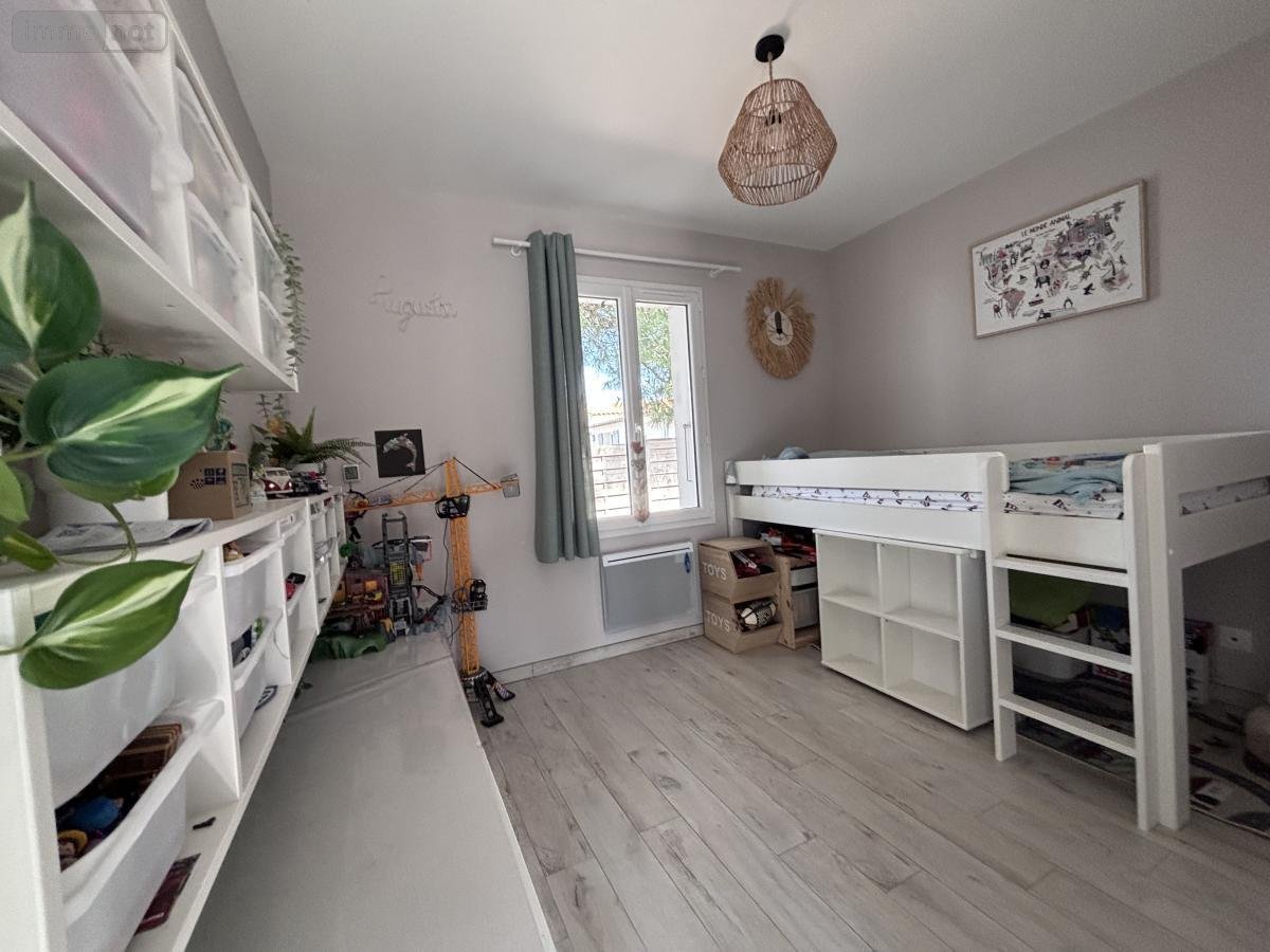 Le Bois Plage pour cette maison située en partie en zone naturelle comprenant jardin d'accueil, une entrée, une pièce de vie lumineuse avec poêle à bois ouverte sur le jardin, une cuisine, une buanderie, un wc, une salle d'eau, trois chambres, chacune équipée d'espaces de rangement.
